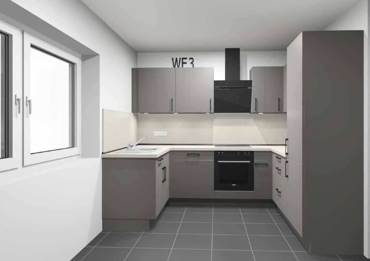Die Ausstattung ist durchdacht und von hoher Qualität. Die Wohnungen werden mit geschmackvollen, modernen Einbauküchen, mit Marken-Sanitärobjekten, Glasduschtür, modernen Fliesen im Bad und Treppenhaus sowie Designbodenlag in Wohn- und Schlafräumen ausgestattet. In den Wohn- und Schlafräumen erhalten die Fenster elektrische Rollläden. Auf den Balkonen und der Dachterasse wird ein WPC-Bodenbelag verlegt. Die Terrassen der Erdgeschosswohnungen erhalten moderne großformatige Terrassenplatten.