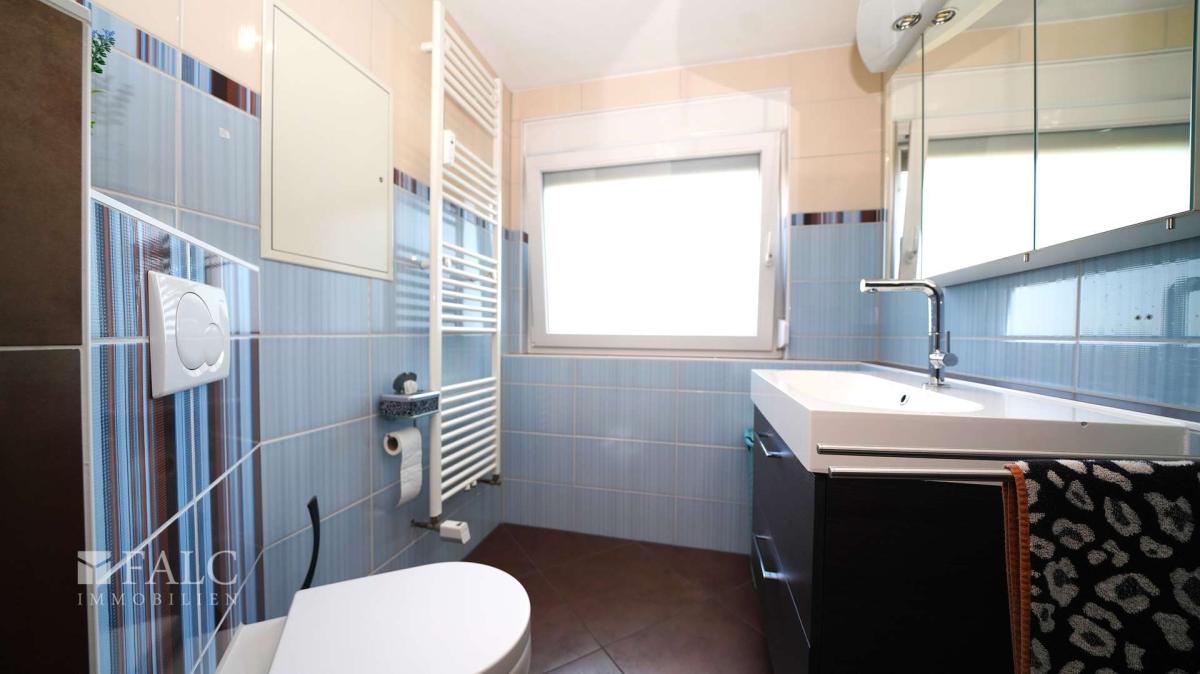 Das Badezimmer wurde zu seiner Zeit umfassend umgebaut und präsentiert sich nun deutlich größer als zuvor. Es verfügt über eine großzügige, bodengleiche Dusche mit Glastür, ein praktisches WC sowie einen kompakten Waschbeckenbereich. Hier steht ausreichend Platz für Komfort und Funktionalität zur Verfügung. Hier wurden im Jahre 2013 die Wasserleitungen erneuert und die Fliesen im 2015 neu verlegt. Zuletzt wurde 2023 das Badmobiliar und im Jahre 2024 das Fenster ausgetauscht.