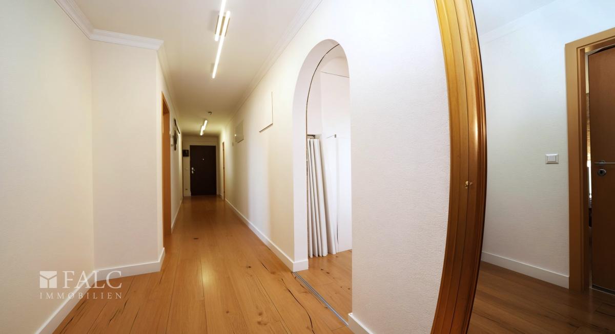 Beim Betreten der Wohnung empfängt Sie ein großzügiger, langer Flurbereich, der sich hervorragend zur Begrüßung von Gästen eignet. Der Flur verbindet alle Räumlichkeiten miteinander und ermöglicht kurze, komfortable Wege innerhalb der Wohnung.