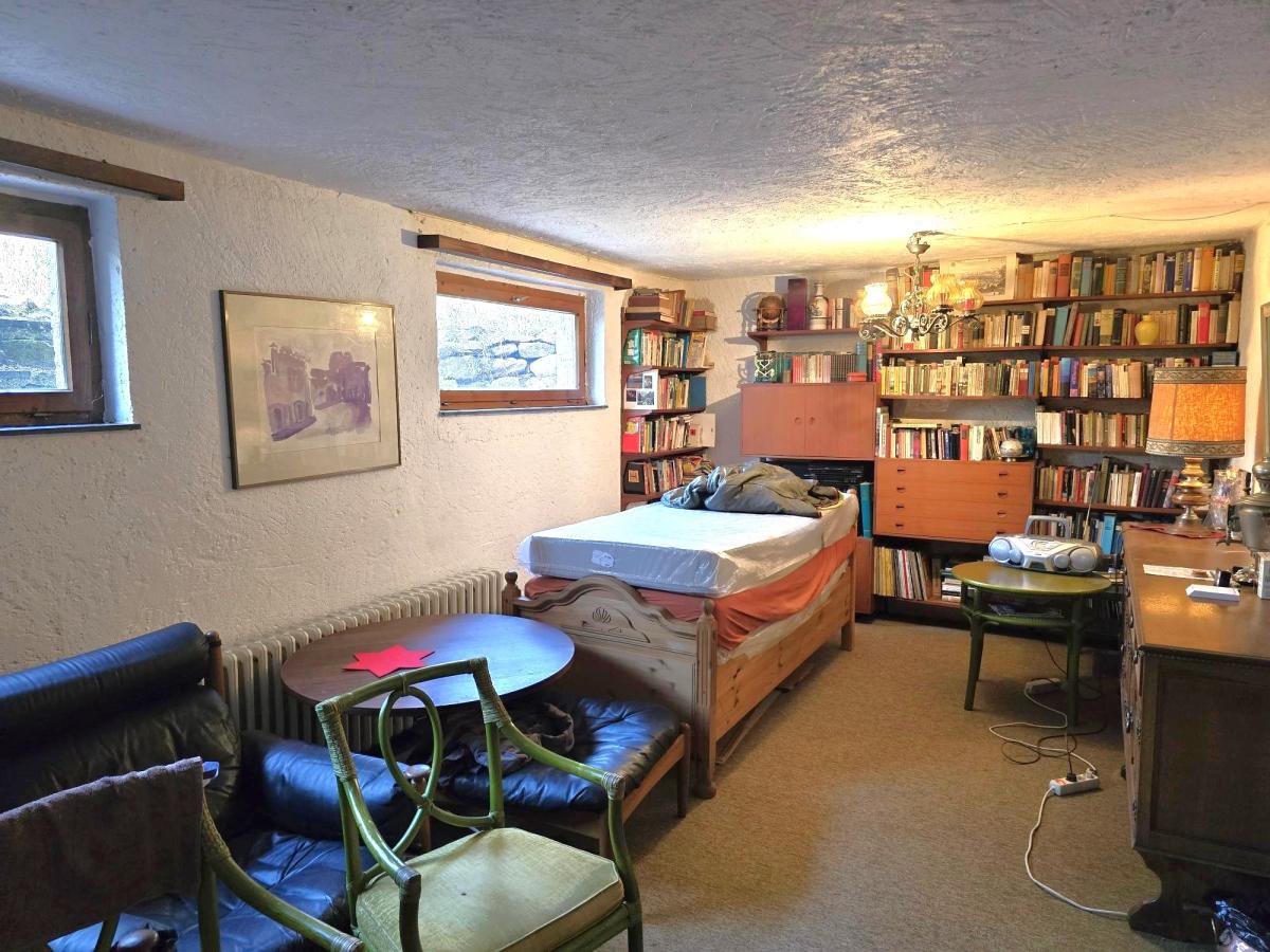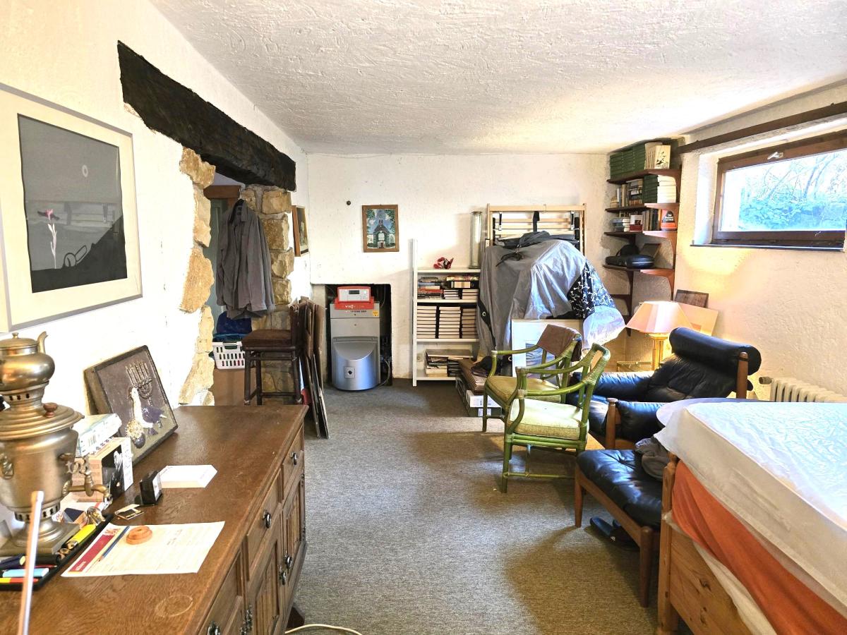 Ergänzt wird das Raumangebot durch 3 Räume in der Teilunterkellerung des Hauses, die durch einen Außenzugang erreichbar sind. Hier finden sich ein großer Hobbyraum mit viel Tageslicht sowie 2 weitere Räume, wovon ein Raum mit einer Toilette ausgestattet ist. Abgerundet werden die als Souterrain ausgebildeten Räumlichkeiten durch einen Heizungskeller mit einer Viessmann-Ölzentralheizung und 2 Kunststofftanks mit je 2.000 Liter Tankinhalt. Der Zugangsbereich des Blockhauses wird durch ein weit ausladendes Schleppdach mit einer ca. 30 m² großen Abstellfläche abgeschirmt.