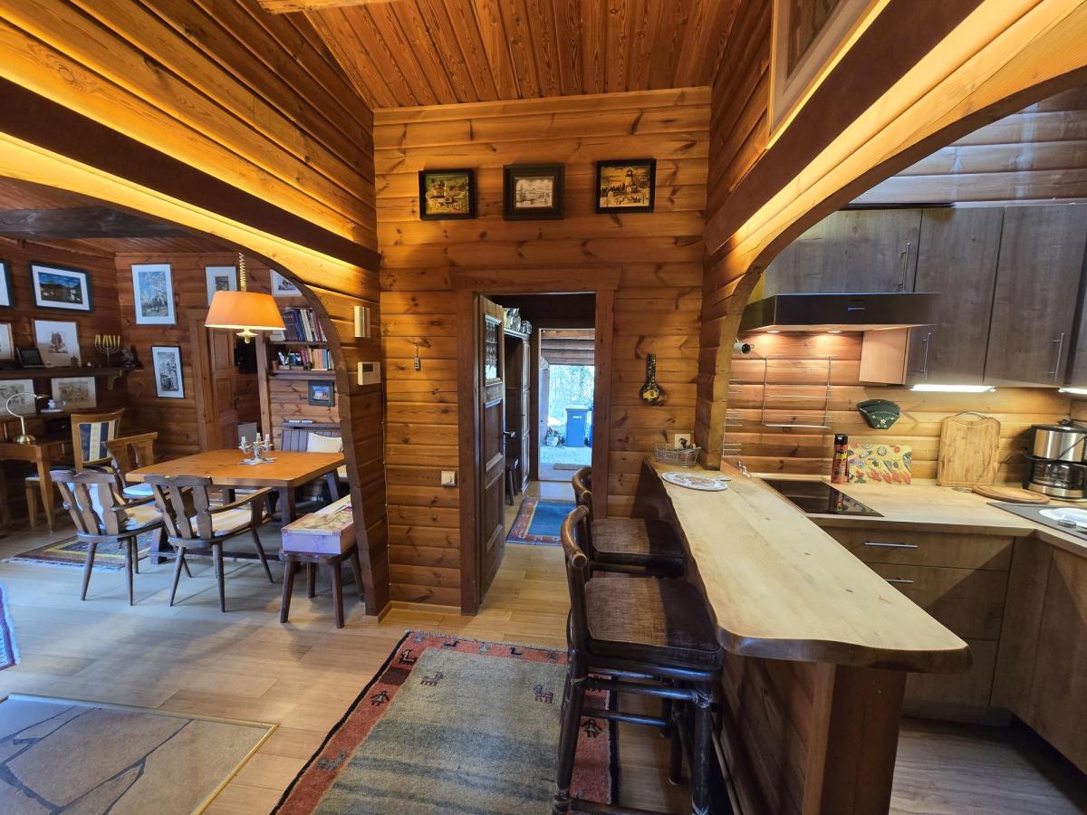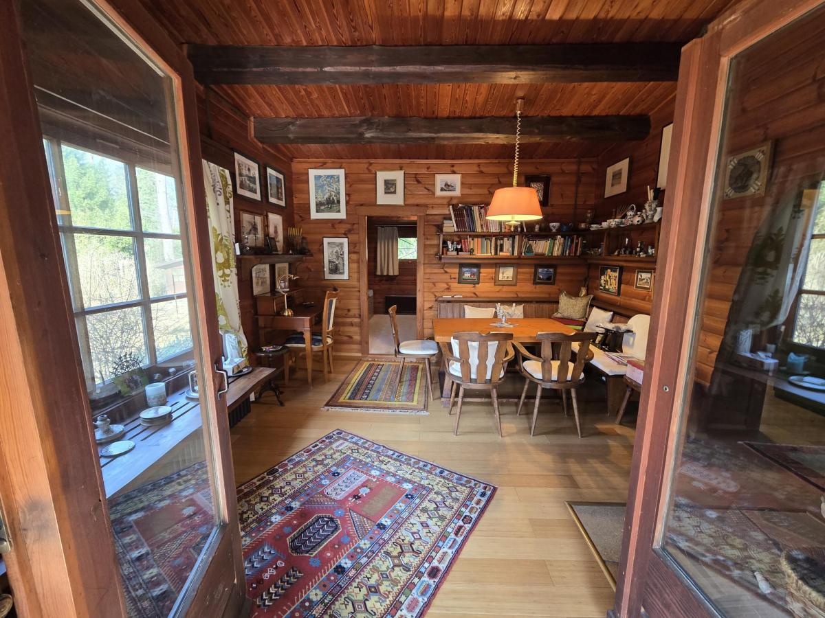 Einziehen und Wohlfühlen – naturverbundenes Wohnen im Blockhaus in massiver Holzbauweise im Stil eines Schweizer Chalets auf einem 953 m² Traumgrundstück an einem Grünzug mit direktem Zugang zur Badestelle am Groß Glienicker See – wohnen wie im Urlaub, hier können Sie Ihre Seele baumeln lassen. Das 1974 von der Firma Fouchs KG aus Bad Lauterberg/Harz als Komfort-Blockhaus Modell E 55 mit Erweiterung erbaute Holzhaus diente ursprünglich als Wochenendhaus. Durch den liebevollen Ausbau im zeitgemäßen Wohnstandard wurde es nachfolgend von den Eigentümern zum Dauerwohnsitz umgestaltet.