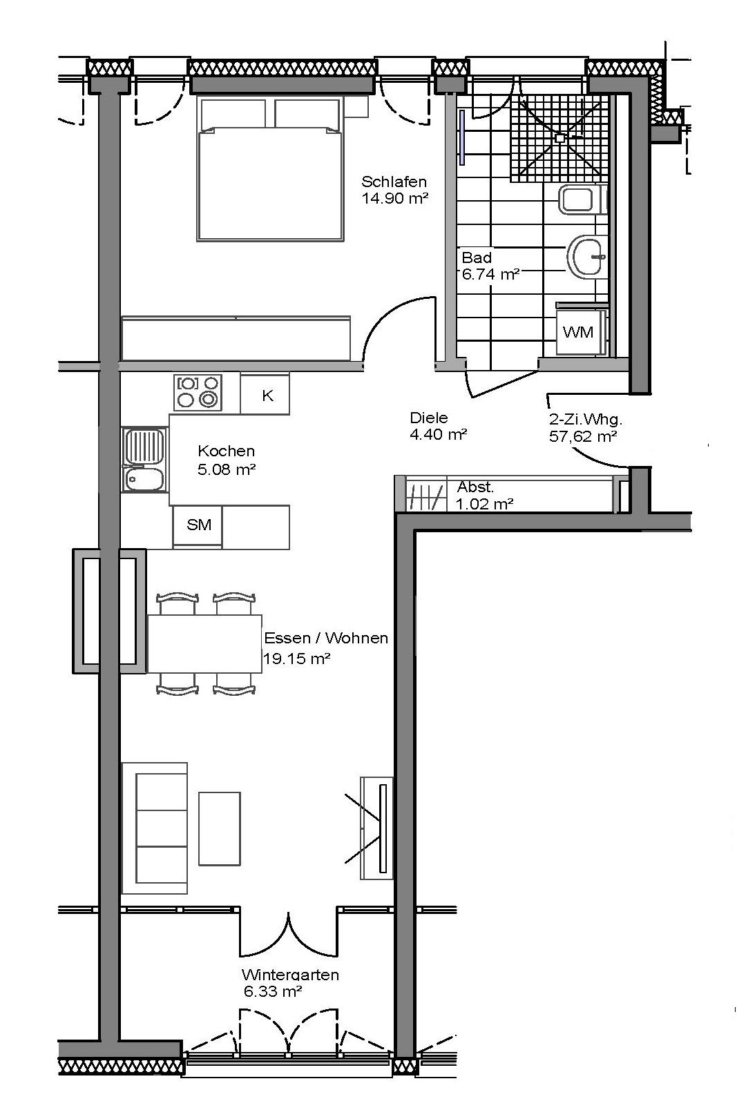 Diese Wohnung ist für Bewerber der Stufe II EOF geeignet.