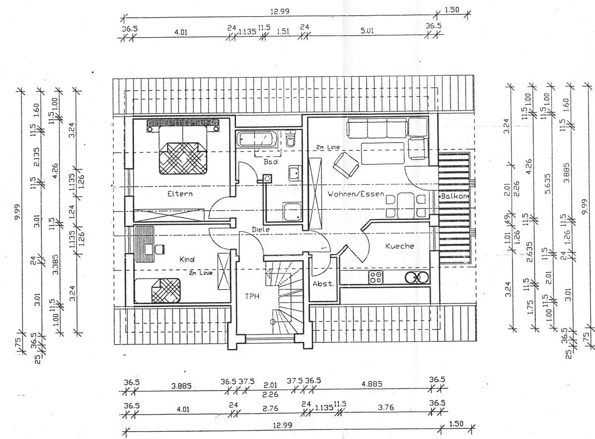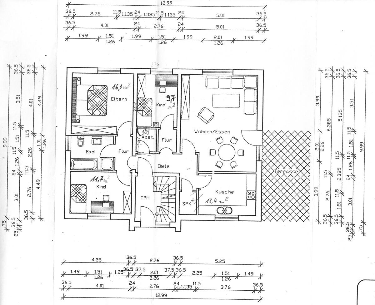 Das gepflegte 3-Familienhaus wurde 1996 neu erbaut. Im Untergeschoss befindet sich eine 3-Zimmer-Wohnung mit Terrasse , im Erdgeschoss eine 4-Zimmer-Wohnung mit Terrasse zur Giebelseite, im Dachgeschoss eine 3-Zimmer-Wohnung mit Balkon zur Giebelseite.