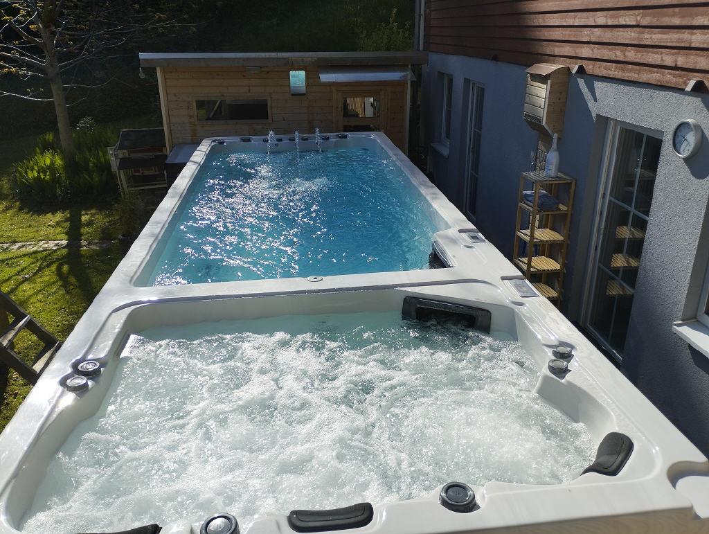 - Schwimm-Spa Pool, Fabrikant Armstark Lotus 660 D mit Gegenstromanlage im Schwimmbereich und abgetrenntem Whirlpool mit Massagedüsen