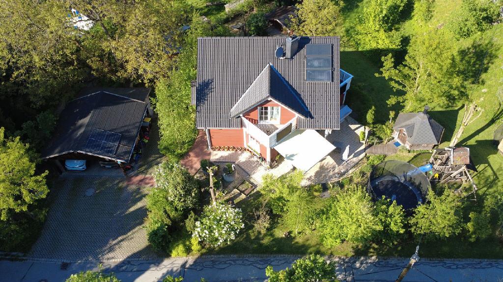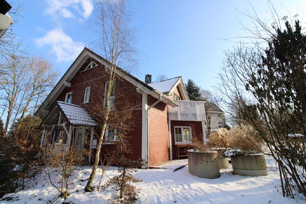 Das Niedrigenergie -Fertighaus, Holzständerbauweise der Firma Suckfüll mit ökologischer Klima-Außenwand und hinterlüfteter Holzfassade wurde 2009 fertiggestellt.