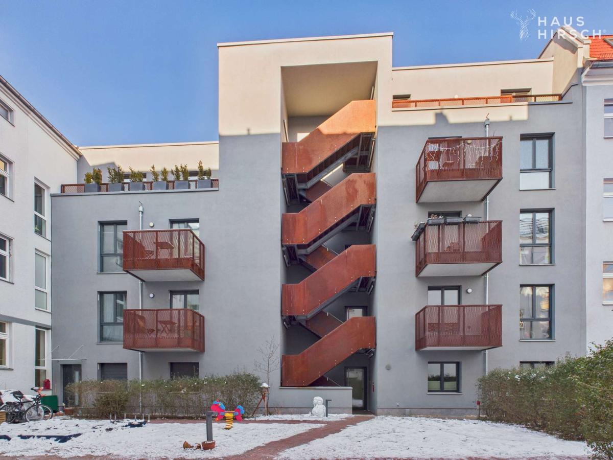 Die Wohnung befindet sich in der 2. Etage und ist bequem mit dem Aufzug zu erreichen. Eine stylische Außentreppe verleiht dem Eingangsbereich einen Hauch von New York Loft style. Der kleine, aber funktionale Eingangsbereich bietet Platz für Ihre Garderobe.