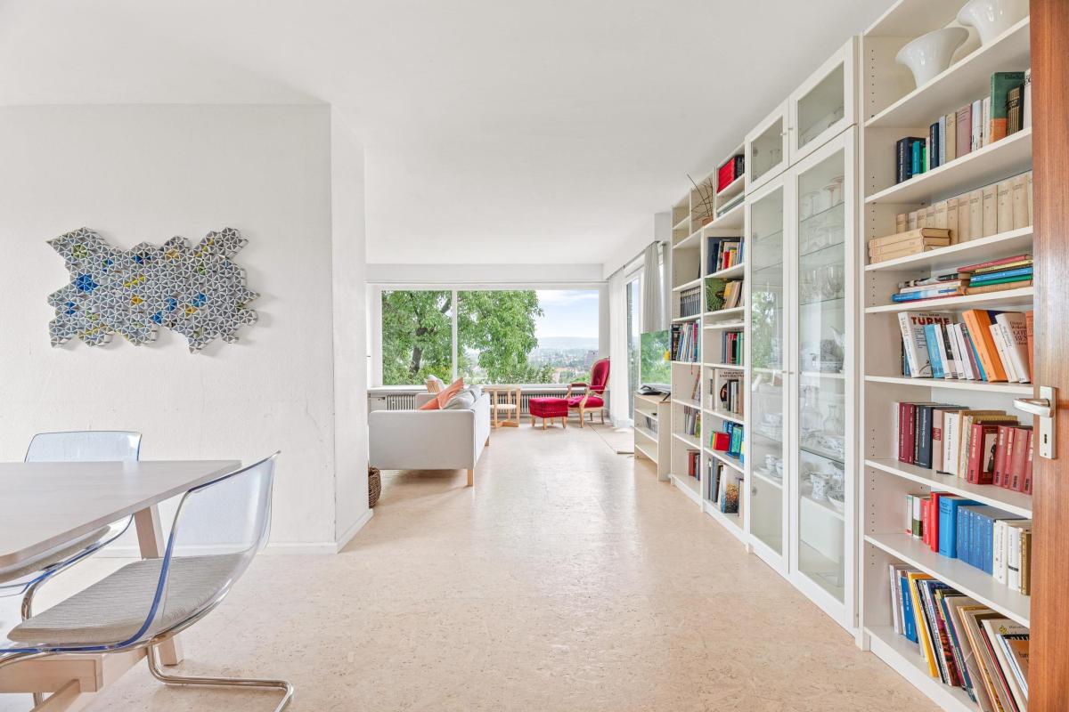 Bereits beim Betreten des Hauses spürt man: Hier wurde mit Weitblick geplant. Der großzügige Wohn- und Essbereich ist das Herzstück des Hauses – lichtdurchflutet, offen gestaltet und mit einem beeindruckenden Panoramafenster, das den Blick weit über die Dächer Kirchheims bis hin zur Schwäbischen Alb freigibt. Ob Sonnenaufgang beim Frühstück oder goldene Abendstimmung bei einem Glas Wein – dieser Ausblick ist ein tägliches Geschenk.
