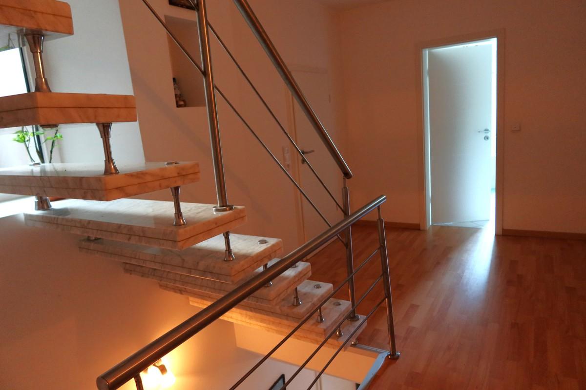 - Marmortreppenstufen und Edelstahlgeländer