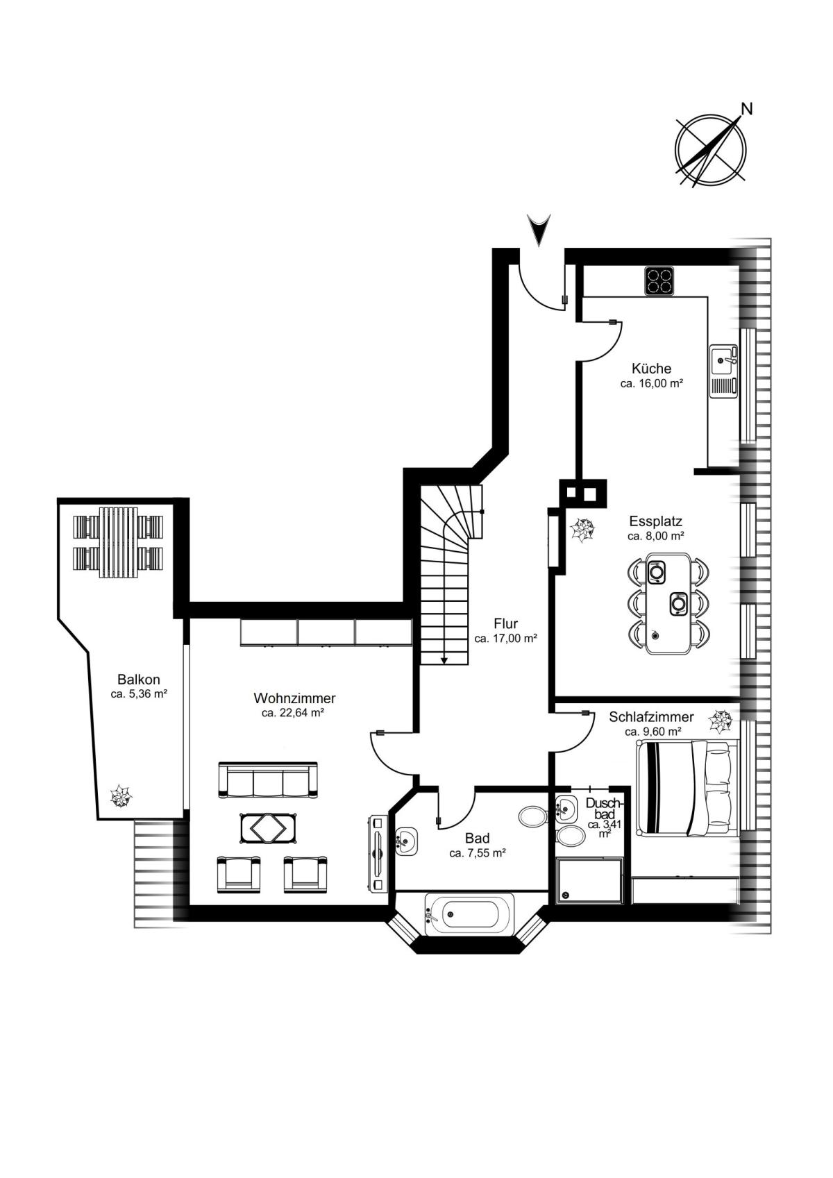 Beim Betreten der Wohnung werden Sie von einem einladenden Flur in Empfang genommen, welcher ausreichend Platz für eine Garderobe bereithält und sämtliche Räumlichkeiten erschließt.