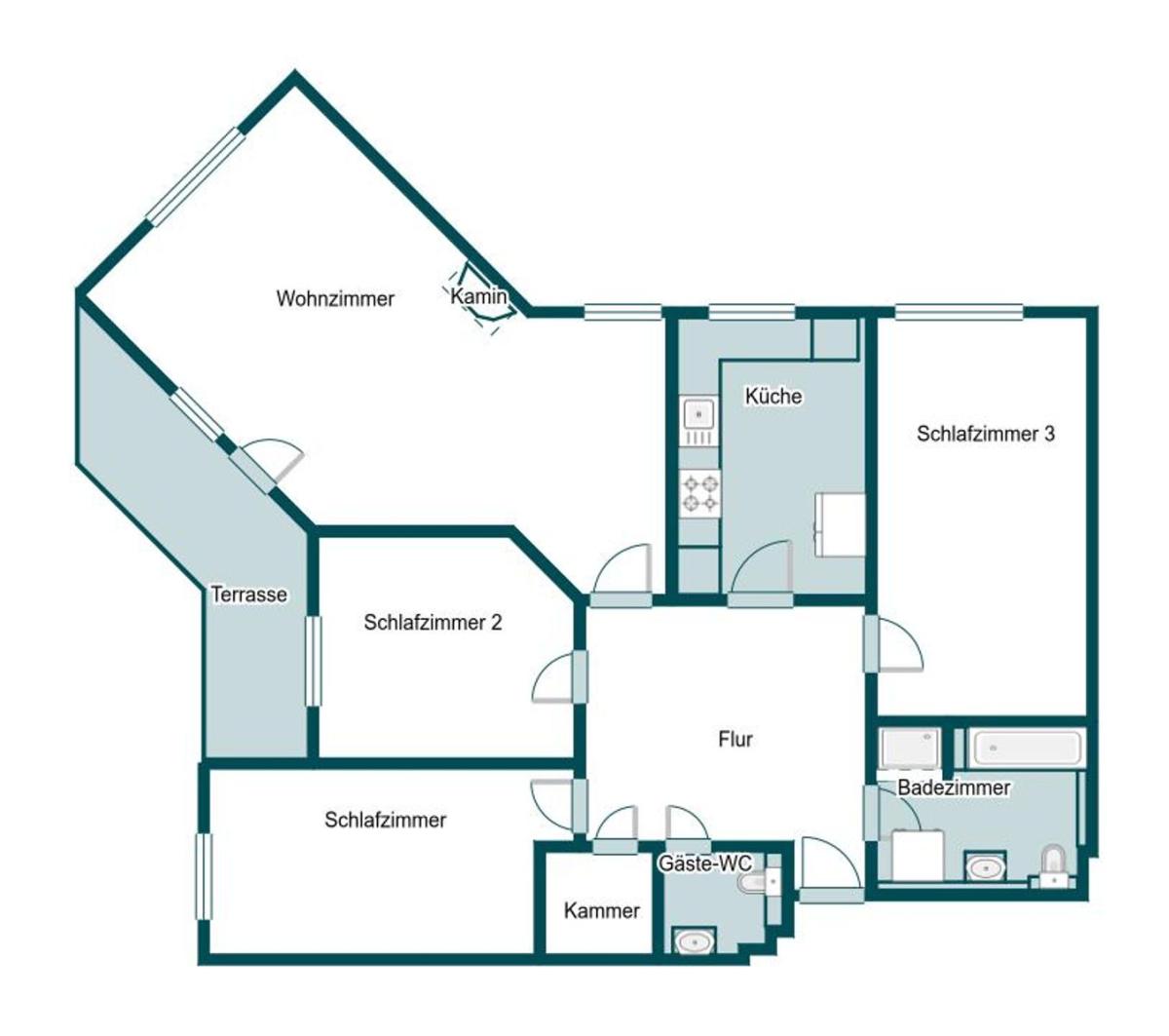 Drei gut geschnittene Schlafzimmer schaffen Raum für Kinder, Homeoffice oder Gäste. Das Vollbad mit Dusche und Badewanne bietet zusätzlich Platz für Waschmaschine und Trockner, ergänzt durch ein separates Gäste-WC. Perspektivisch bietet insbesondere der Duschbereich im Bad Potenzial für eine optische Überarbeitung, sodass sich hier mit überschaubarem Aufwand ein moderner Akzent setzen lässt.