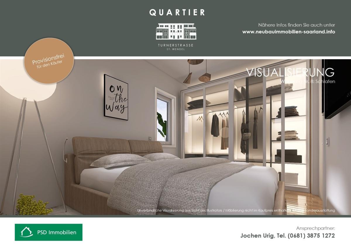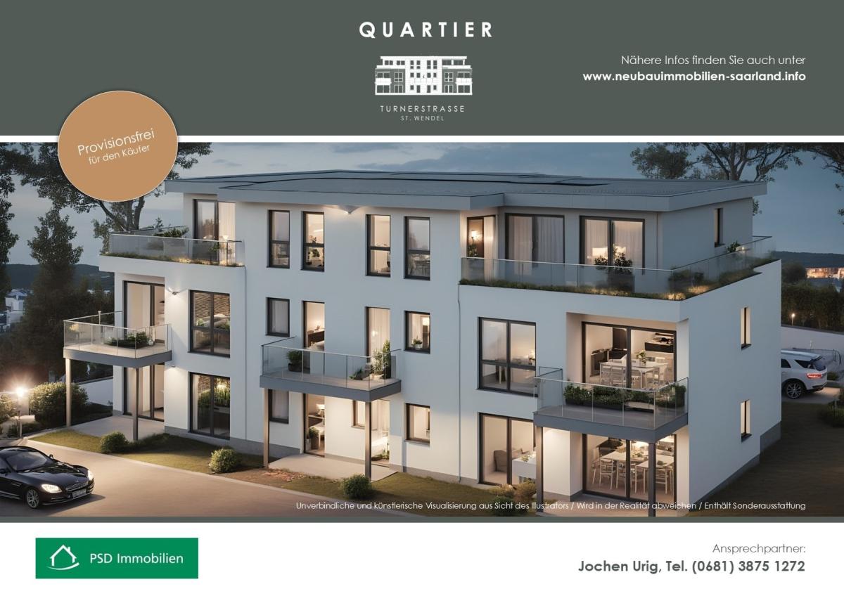 Möchten Sie sich schon bald den Traum von den eigenen vier Wänden erfüllen? Dann sind Sie im QUARTIER TURNERSTRASSE I ST. WENDEL goldrichtig. Die moderne Architektur richtet sich an Menschen, die einen individuellen Wohnstil, klare Linien, viel nutzbare Wohnfläche und einen hohen Ausbaustandard schätzen.