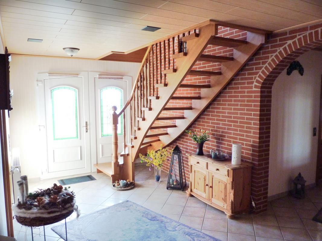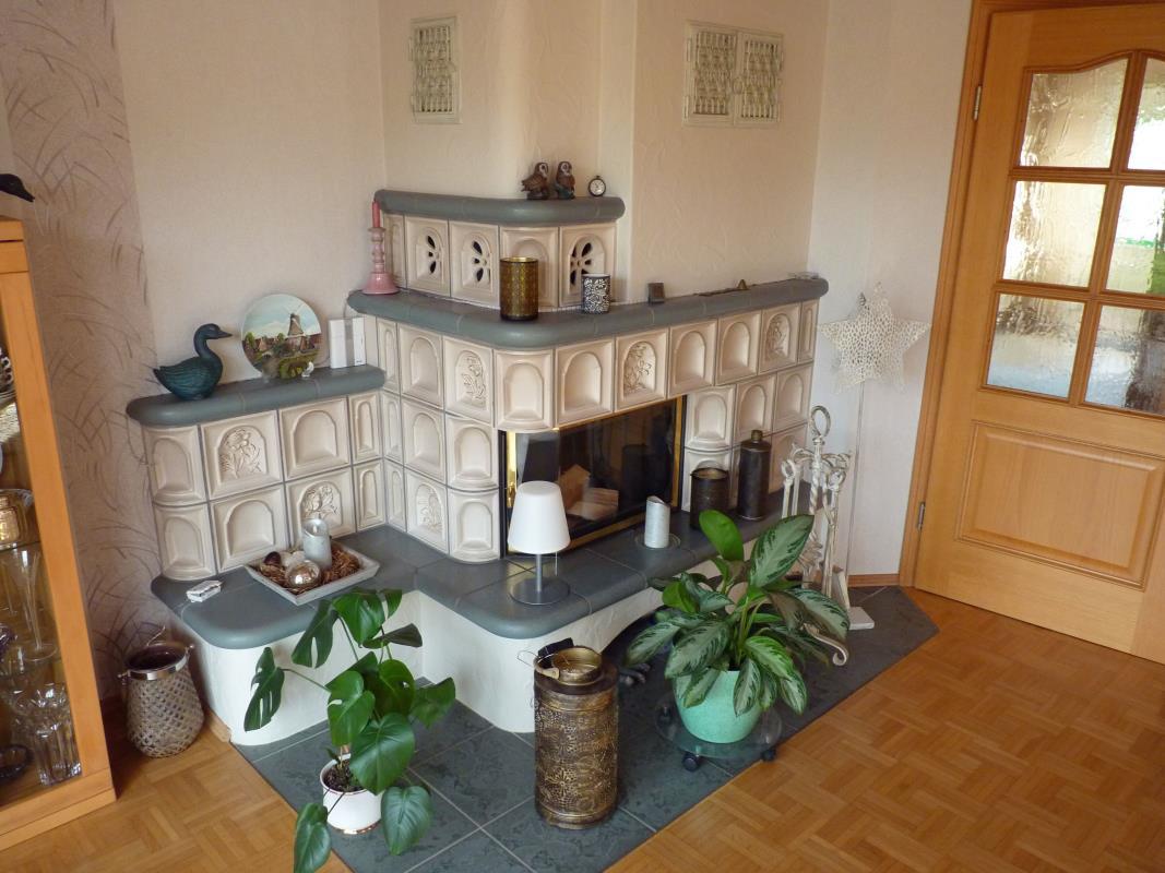 Das Wohnhaus betritt man über die große lichtdurchflutete Diele. Weiter geht es zum großzügigen Wohnzimmer mit dem großen Kamin mit dem Esszimmer. Vom Flur führen Türen in das Schlafzimmer mit angrenzendem Badezimmer und in die Küche mit direktem Zugang zur Speisekammer. Ebenfalls im Erdgeschoss befindet sich noch ein großer Abstellraum mit integrierter Küchenzeile.
