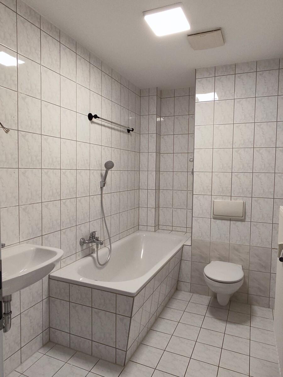 - gefliestes Bad (untere Wohnebene): Wanne, WC, Waschbecken