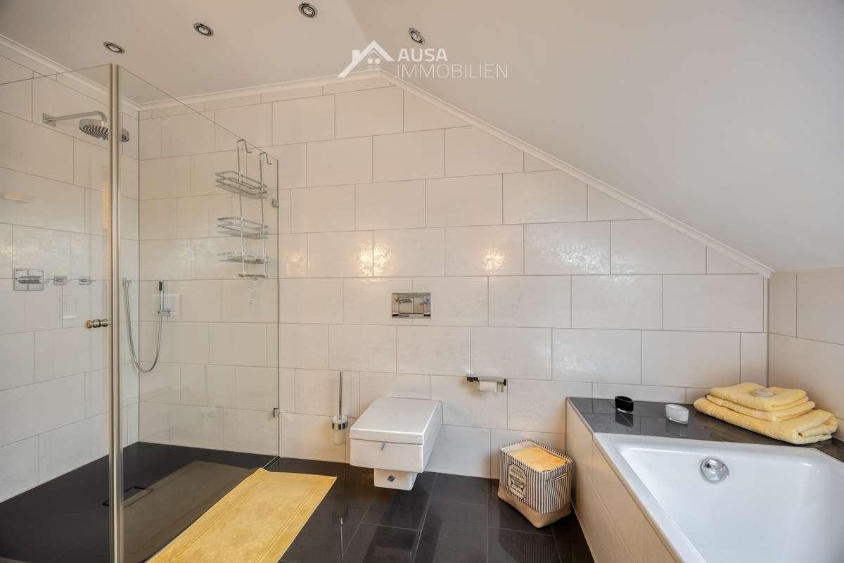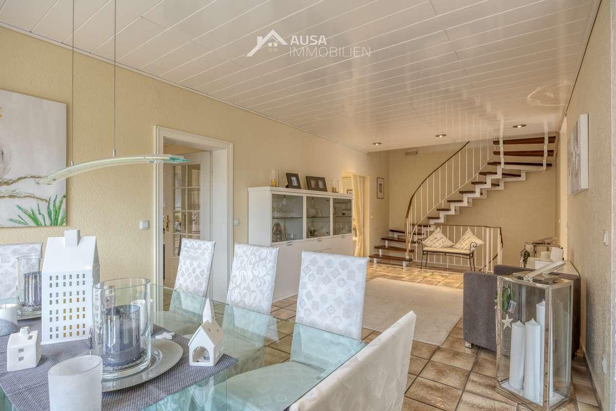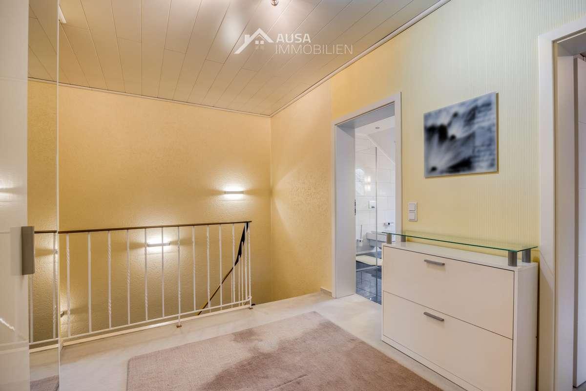 Wenn Sie Wert auf großzügiges Wohngefühl legen, dann haben Sie hier Ihr Traumhaus gefunden. Diskreter Luxus, gepaart mit Liebe zum Detail erfüllen Ihre Ansprüche. Beim Betreten des Hauses spürt man gleich das einladende Ambiente. Besonders hervorzuheben ist der große weitläufige Wohn-Essbereich mit Blick in den wunderschönen Garten. Für die Gemütlichkeit sorgen die Fußbodenheizung und der Kamin. Die drei Schlafzimmer im Obergeschoss bieten genügend Platz für die ganze Familie. Komfortabel sind auch die zwei Bäder im Haus. Der Vollkeller mit einem ausgebauten Wohnraum lässt ebenso keine Wünsche offen. Die Garage mit elektrischen Tor hat einen praktischen direkten Zugang zur Küche. Eine extra große Terrasse lädt zu vielen gemütlichen und geselligen Stunden ein.