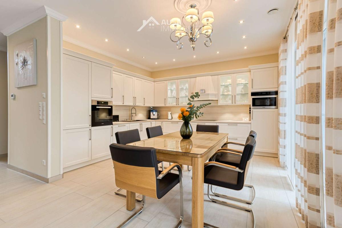 Die Räume im Erdgeschoss haben eine Höhe von 2,85 was ein tolles Wohnfeeling ausmacht. Der Masterbedroom mit dem Bad en suite und der angrenzenden Ankleide bedeutet absolute Privatsphäre. Mögliche 5 Schlafzimmer, zwei Bäder und ein Gäste WC, sowie eine große überdachte Terrasse machen das Wohnen komfortabel. Das Haus wird beheizt durch eine Gasheizung und eine Fußbodenheizung. Die eingebaute Sauna sorgt für Wellnessfeeling.