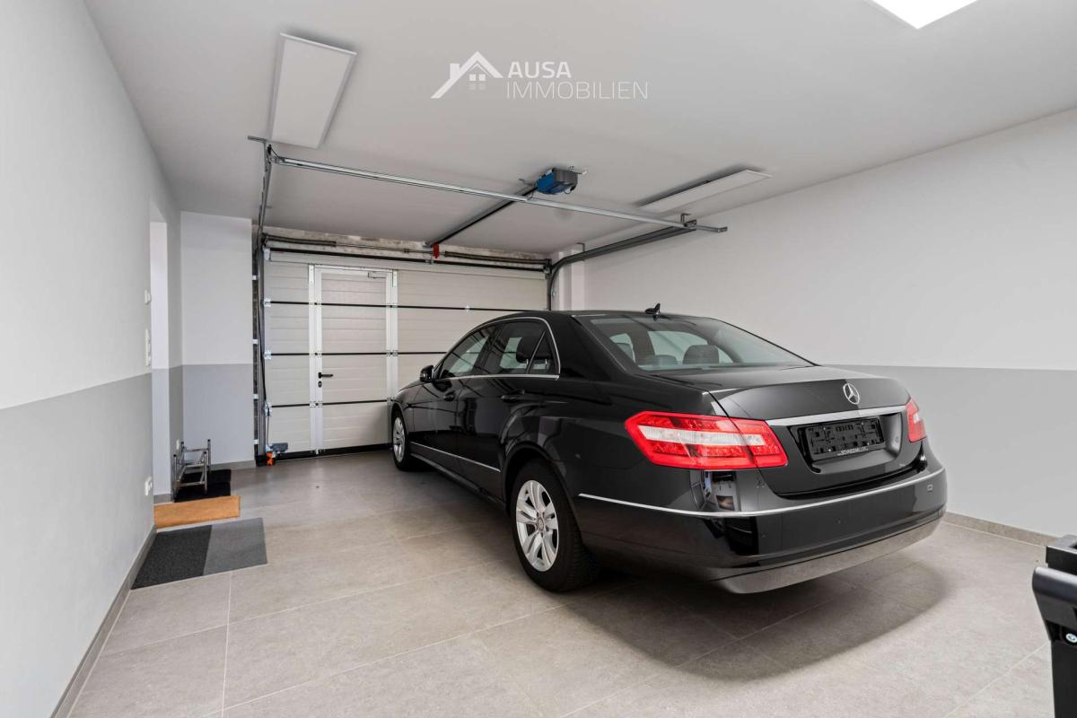 In der großen Garage, selbstverständlich mit elektrischem Tor, fühlt sich auch Ihr Auto wohl. Ein Teil der Garage hat sogar eine Fußbodenheizung.