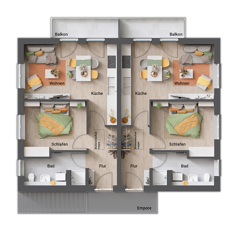 Wer sich entscheidet, das Flair 180 Trio zu bauen, kann die Wohnungen zu verschiedenen Zwecken nutzen: Mehrgenerationenwohnen, Investition, Wohnen mit Freunden oder Bekannten.