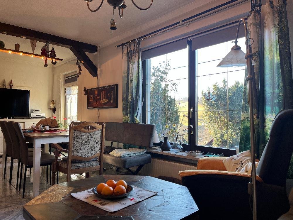 Ein heller und freundlicher Eingangsbereich empfängt Sie in dieser ansprechenden Doppelhaushälfte. Vom Flur aus gelangen Sie in die große und helle Küche. Auf Wunsch können die vorhandenen Einbauküchenmöbel übernommen werden. Ebenfalls vom Flur erreichbar ist das großzügige, lichtdurchflutete Wohnzimmer. Große Fenster in allen Räumen sorgen für ein angenehmes Wohnambiente und eröffnen einen herrlichen Blick ins Tal, auf grüne Wiesen und Felder.