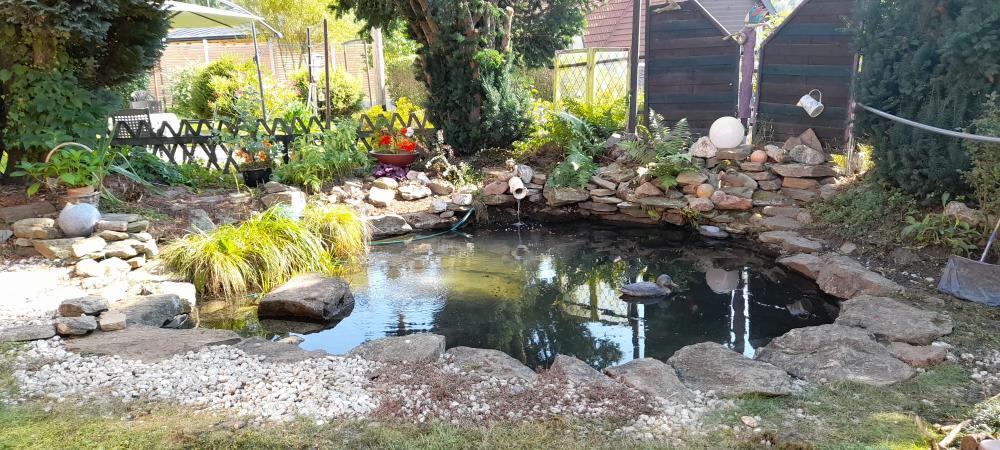 Das rund 600 m² große, sonnige Hanggrundstück ist sehr gepflegt und zugleich pflegeleicht angelegt. Ein liebevoll gestalteter Garten umgibt das Haus und lädt sowohl zum Entspannen als auch zum Spielen ein. Ein Gartenteich, ein großzügiges Doppelcarport sowie weitere Nutzflächen runden das attraktive Gesamtbild ab.