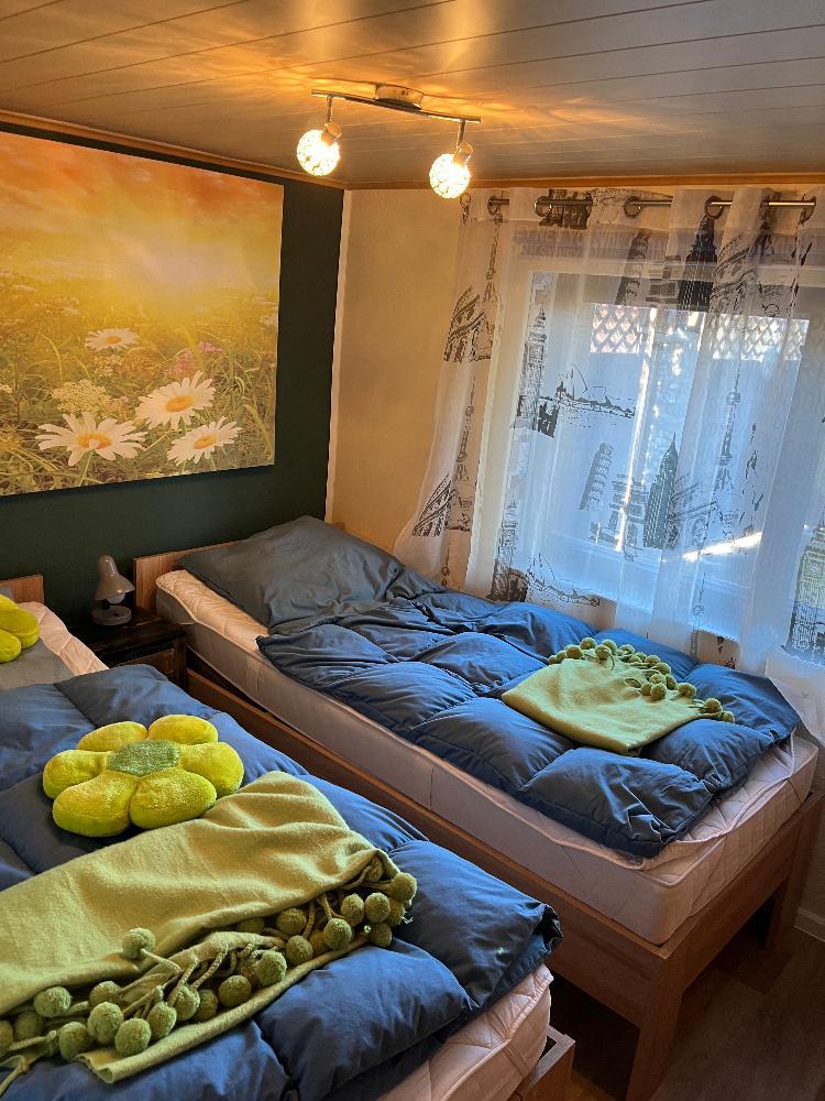 Die Immobilie verfügt über zwei gut geschnittene Schlafzimmer sowie ein Tageslichtbad. Im Hochparterre befindet sich ein weiterer nutzbarer Raum, der sich ideal als Arbeits-, Gäste- oder Hobbyzimmer eignet. Von diesem Raum aus können Sie den direkten Zugang zum Garten nutzen. Zusätzlich sind weitere Ausbaureserven auf dieser unteren Etage vorhanden, unter anderem im Bereich der Garage. Auch auf dieser Etage befinden sich weitere Lager-, Arbeits- bzw. Abstellräume.
