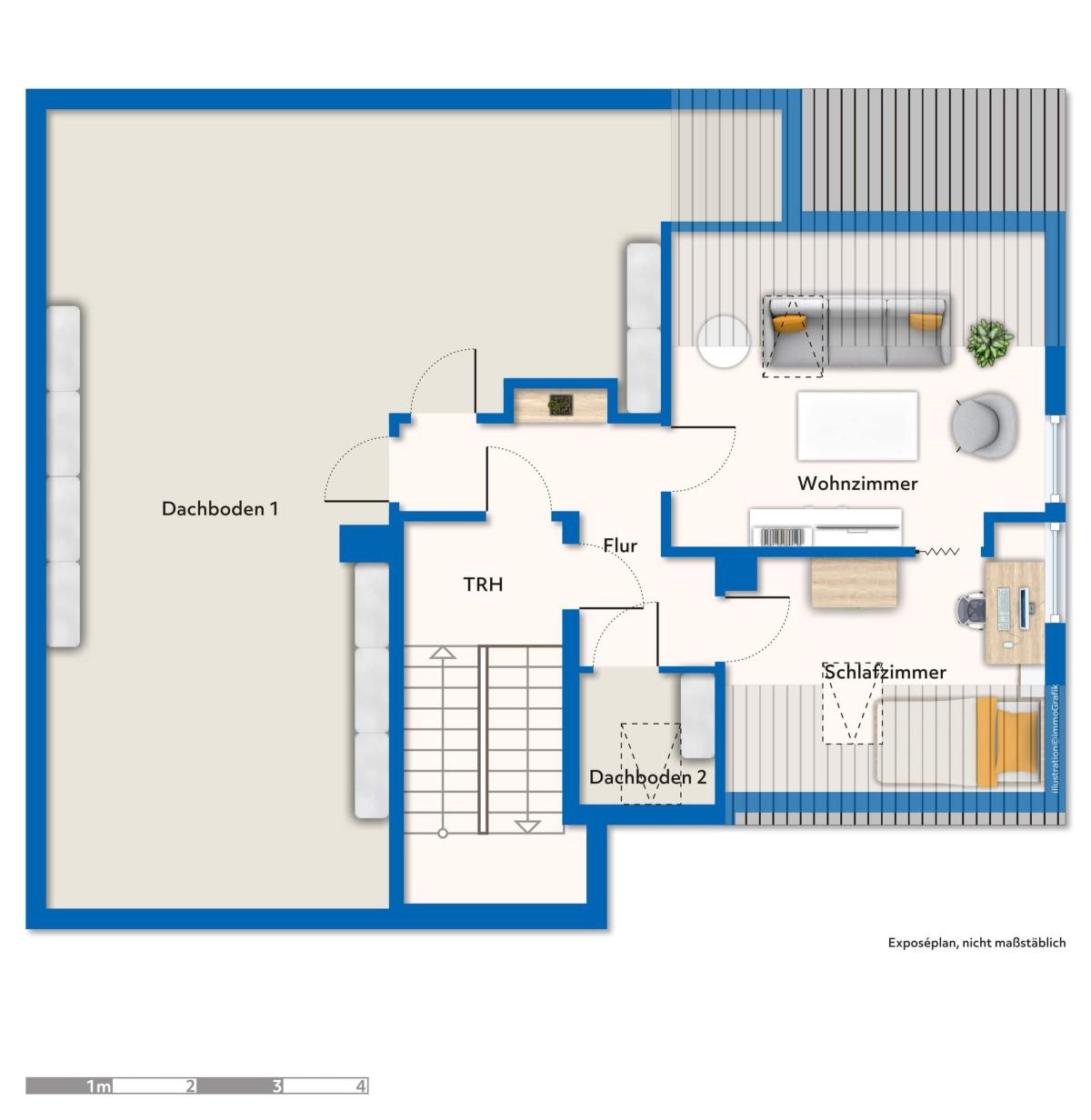 Das Wohnhaus verfügt über eine Wohnfläche von ca. 127 m², verteilt auf 5,5 Zimmer, und bietet damit bereits in seinem aktuellen Zustand eine großzügige Raumaufteilung. Zusätzlich steht im Dachgeschoss ein großer, bislang nicht ausgebauter Raum zur Verfügung, der weiteres Potenzial für zusätzlichen Wohnraum oder individuelle Nutzungsmöglichkeiten eröffnet (vorbehaltlich baurechtlicher Genehmigung).