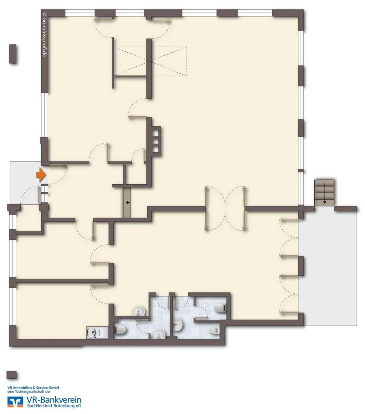 Innerhalb von Schenklengsfeld steht diese Gewerbefläche im Erdgeschoss mit einer Größe von ca. 183 m² zur Vermietung. Insgesamt verfügt die Fläche über vier Räume und zwei Toiletten. Interessant für alle Zielgruppen und Branchen. Für Sie und Ihre Besucher stehen Parkplätze zur Verfügung. Eine Rampenanbindung ist zusätzlich vorhanden. Angedacht ist die Vermietung der Flächen im jetzigen Zustand. Rückbaumaßnahmen sind nach Rücksprache mit dem Vermieter und dem Mieter möglich. Der monatliche Mietpreis erfolgt nach Absprache.