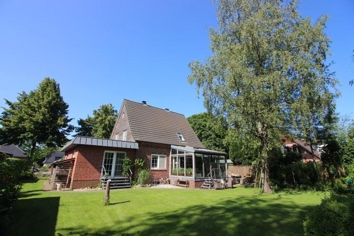 Dieses Einfamilienhaus besticht durch sein großzügiges Zimmerangebot und den hübsch angelegten Garten.
