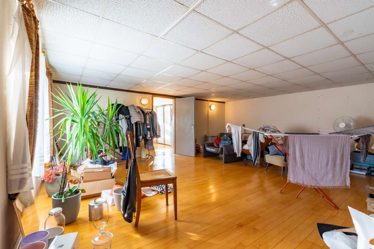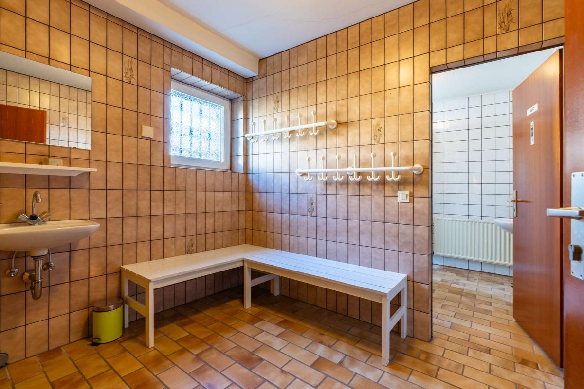 Im Erdgeschoss ist ein großzügiges Tanzstudio untergebracht, das über einen eigenen Zugang im hinteren Teil des Gebäudes verfügt und sich ideal für einen möglichen zukünftigen Gewerbebetrieb eignet. Die Fläche ist funktional geschnitten und bietet Platz für Trainings und Kursangebote. Sämtliche Umkleiden sowie sanitäre Einrichtungen für den Studiobetrieb befinden sich ebenfalls auf dieser Ebene.