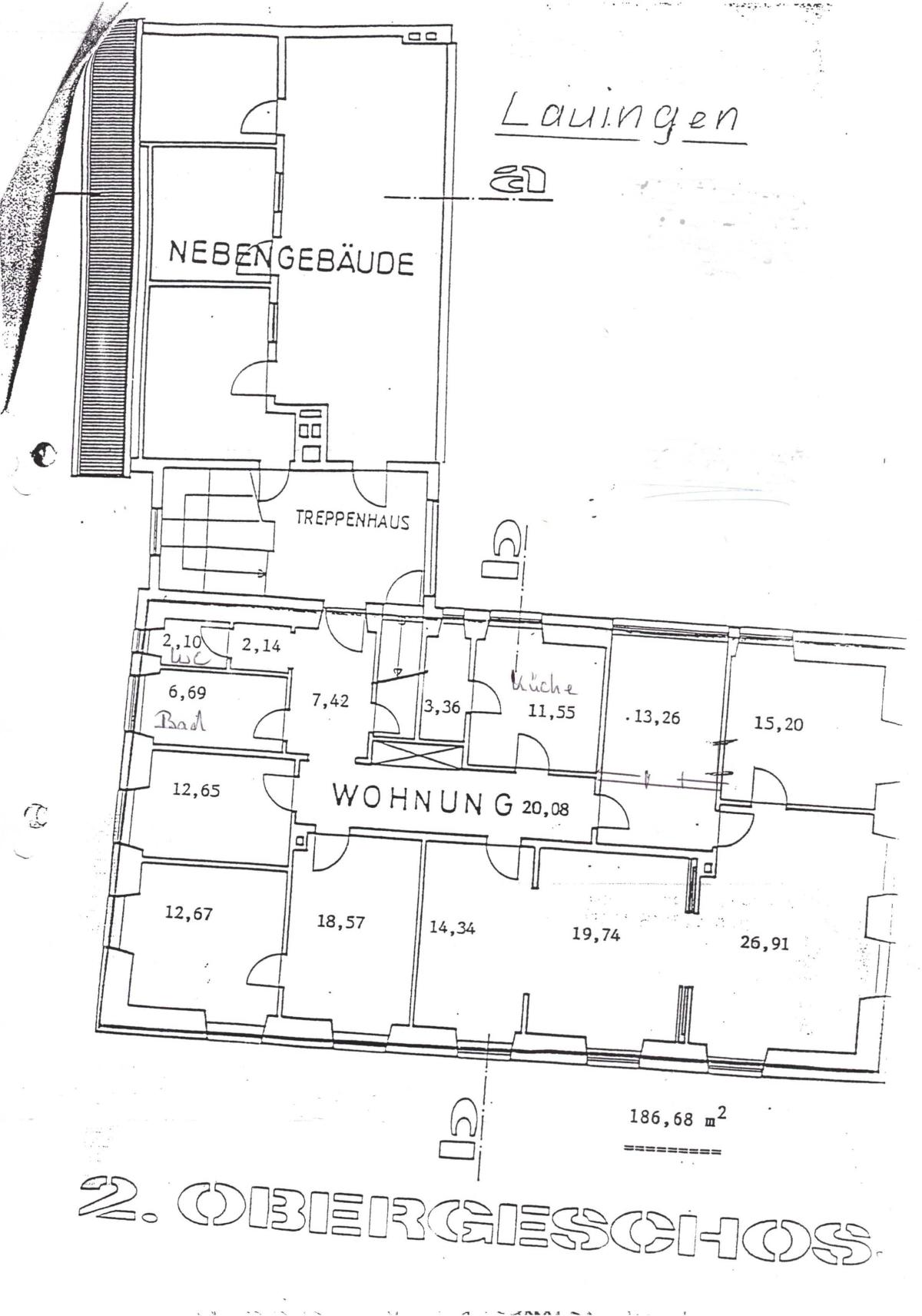 Die großzügige, denkmalgeschützte Einheit befindet sich im zweiten Obergeschoss eines Mehrparteienhauses, auch bekannt unter dem "Albertus-Magnus-Haus", und liegt direkt im Zentrum von Lauingen in Rathausnähe.