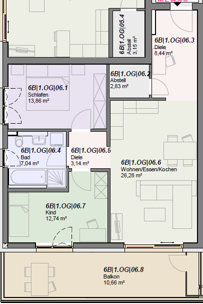 Sie verfügt neben zwei Schlafzimmern, über ein Tageslichtbadezimmer mit Wanne und Dusche und den Wohn-/Esszimmerbereich, von welchem Sie auf den Balkon gelangen. Ein Abstellraum in der Wohnung sorgt für zusätzlichen Stauraum und besonders kurze Wege.