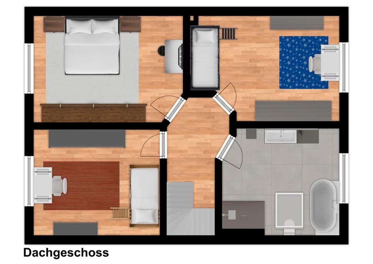 Auf 3 Etagen findet jeder den passenden Rückzugsort. Der wohlüberlegte Grundriss lässt kaum Wünsche offen. Die vorhandene Küche mit Side-by-Side Kühlschrank, moderne Bäder und der gute bis sehr gute Zustand ermöglichen den direkten Einzug.