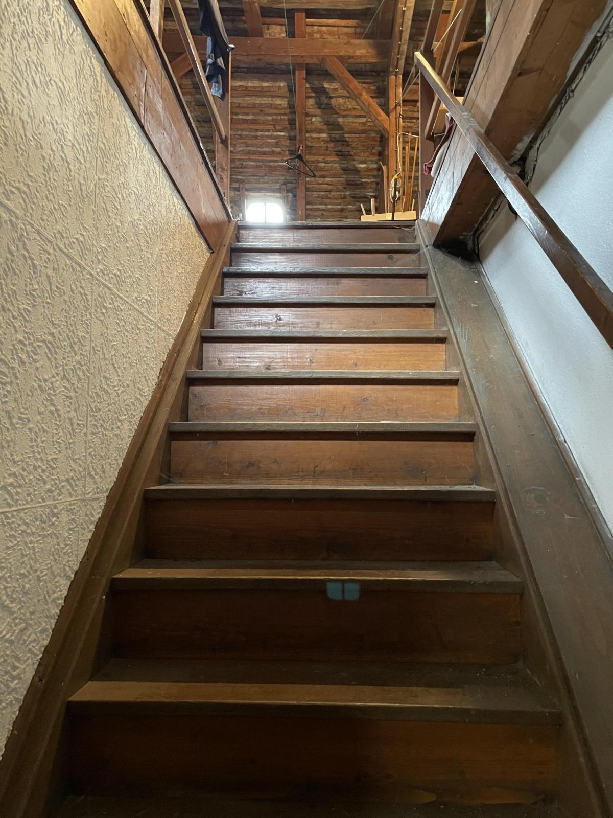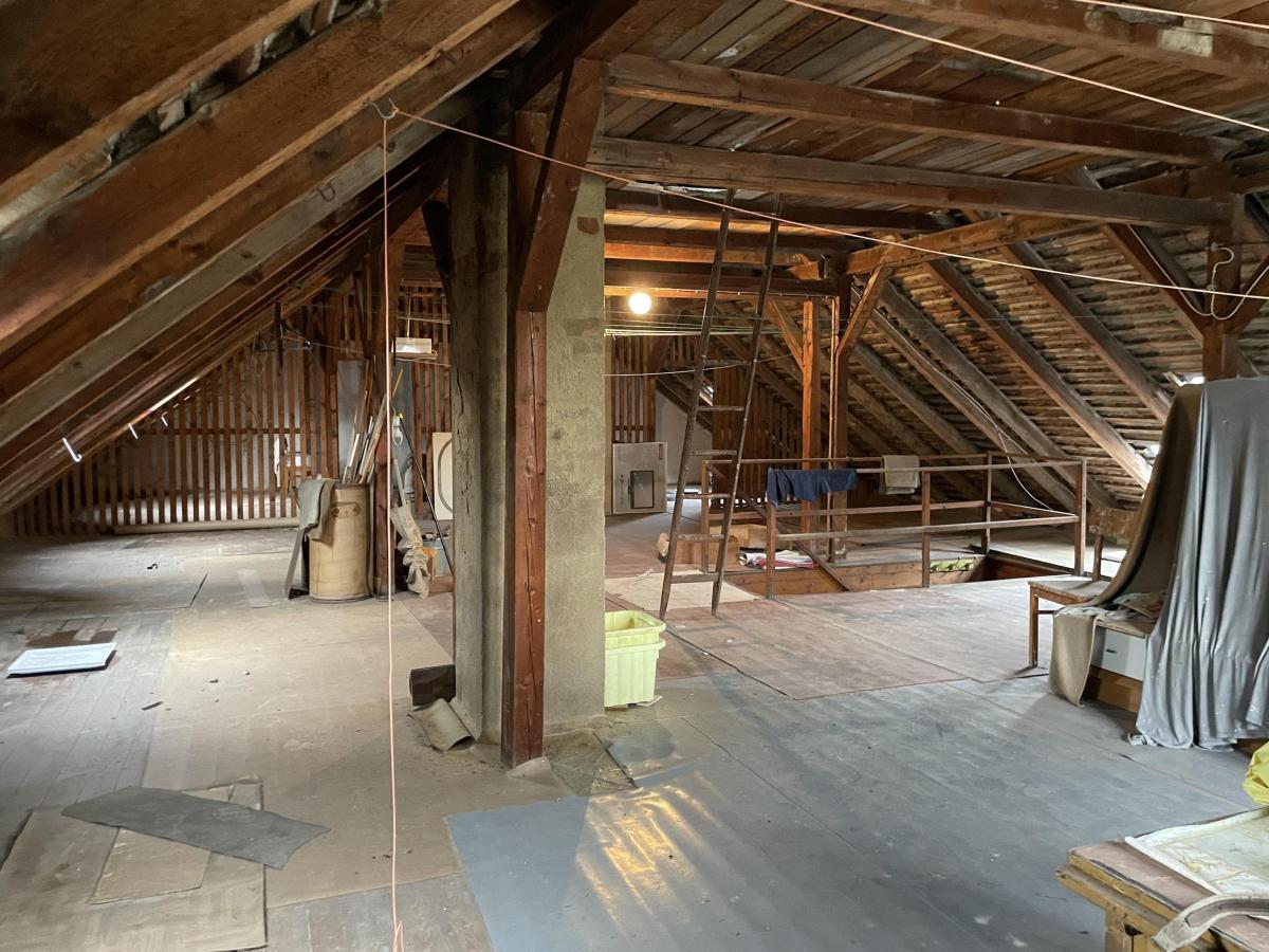 Zusätzlich bietet das Obergeschoss den Zugang zum Dachboden. Dieser ist unausgebaut und bietet aktuell eine Menge Stauraum.
