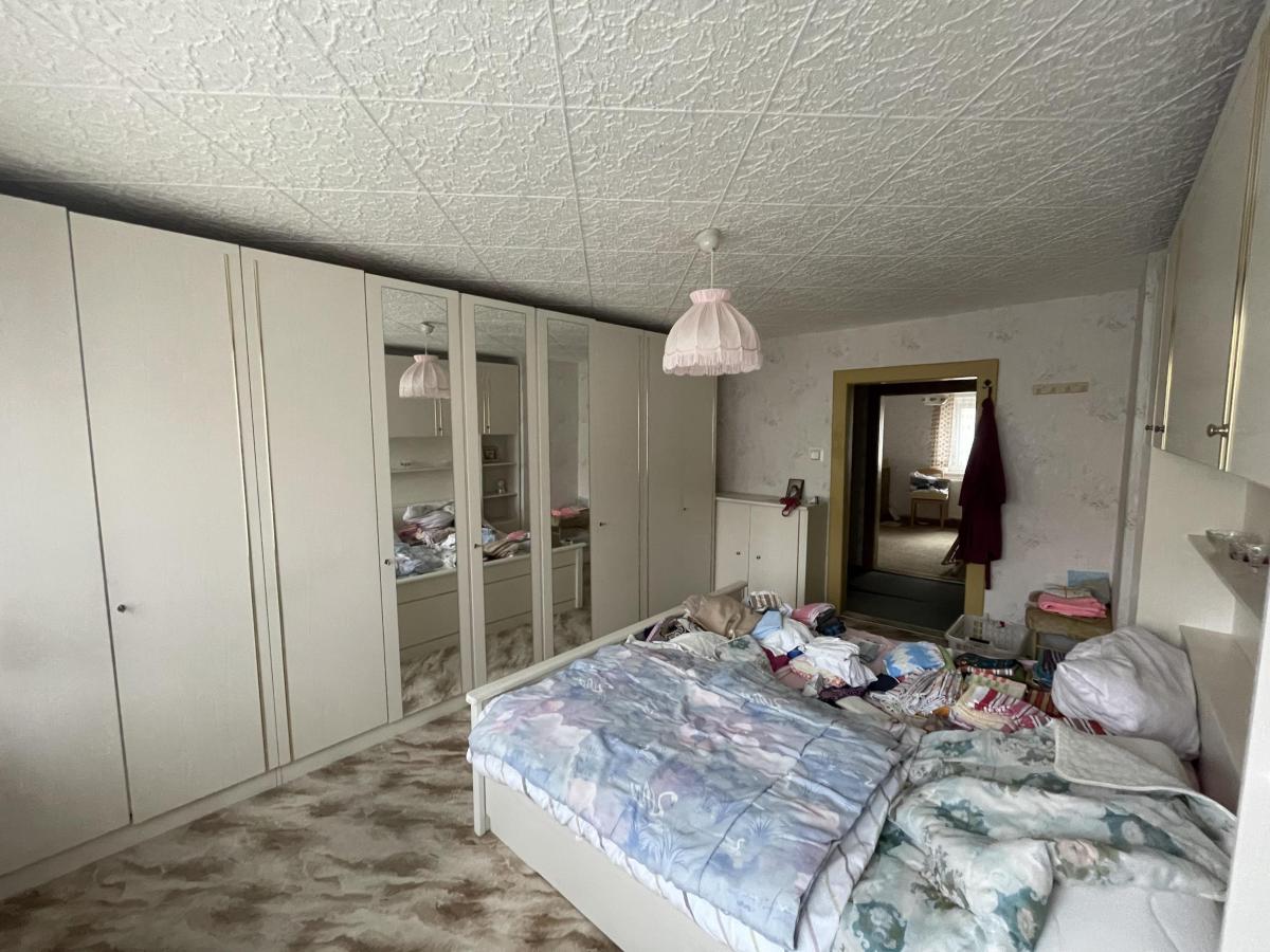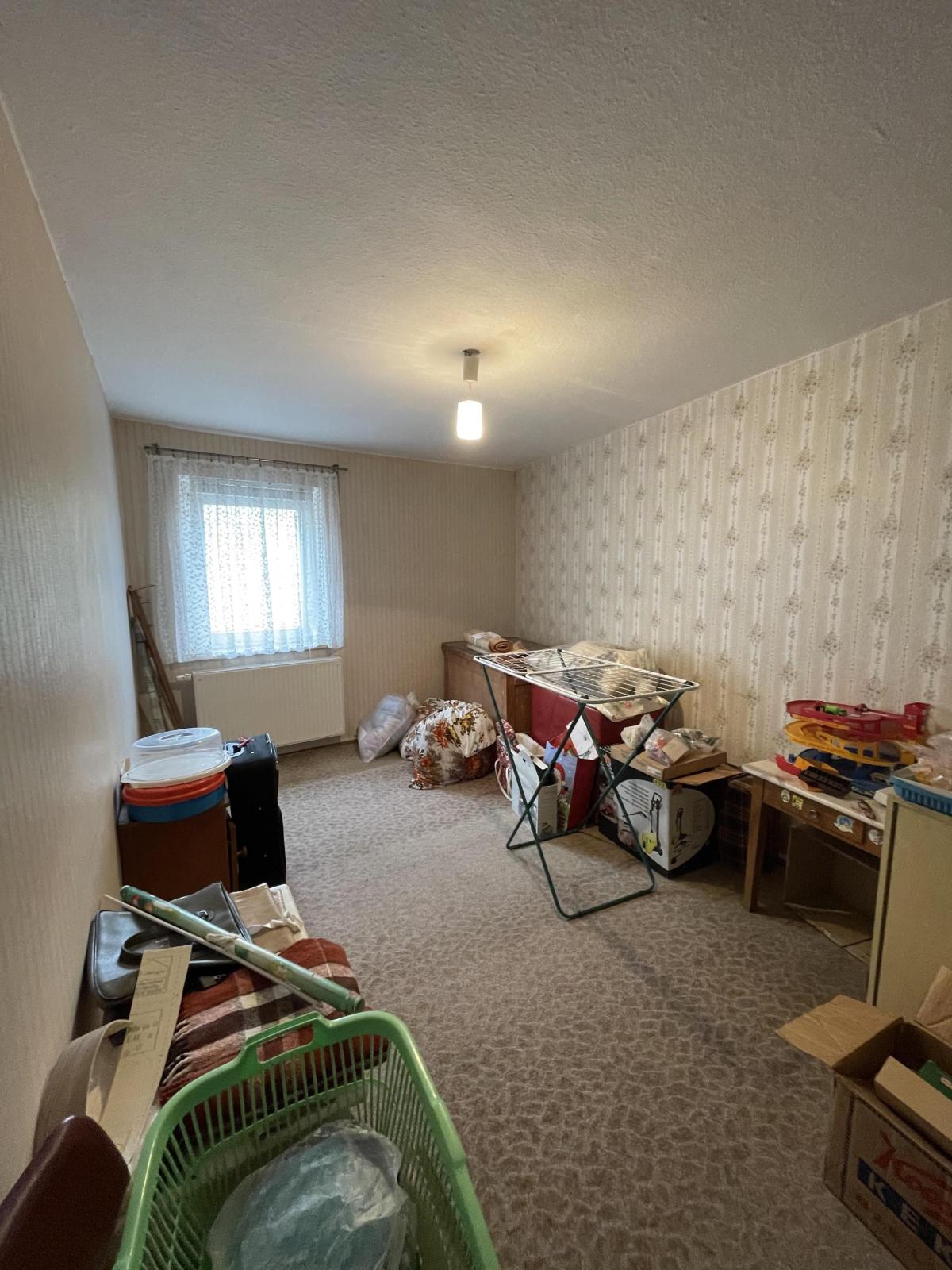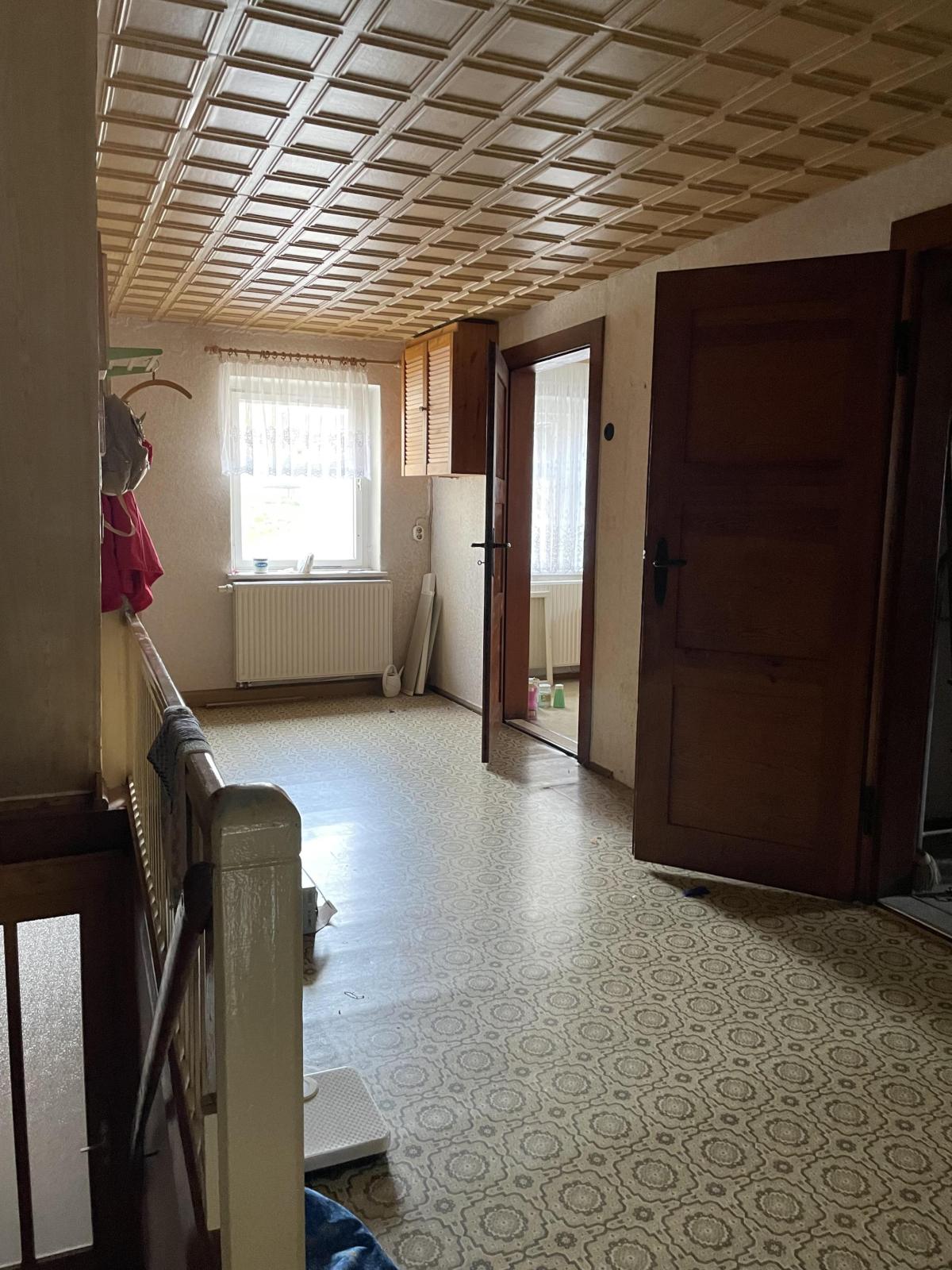 Das großzügige Obergeschoss umfasst 6 Schlafzimmer, eine Küche, ein Wohnzimmer, eine Abstellkammer und ein Bad mit Wanne.