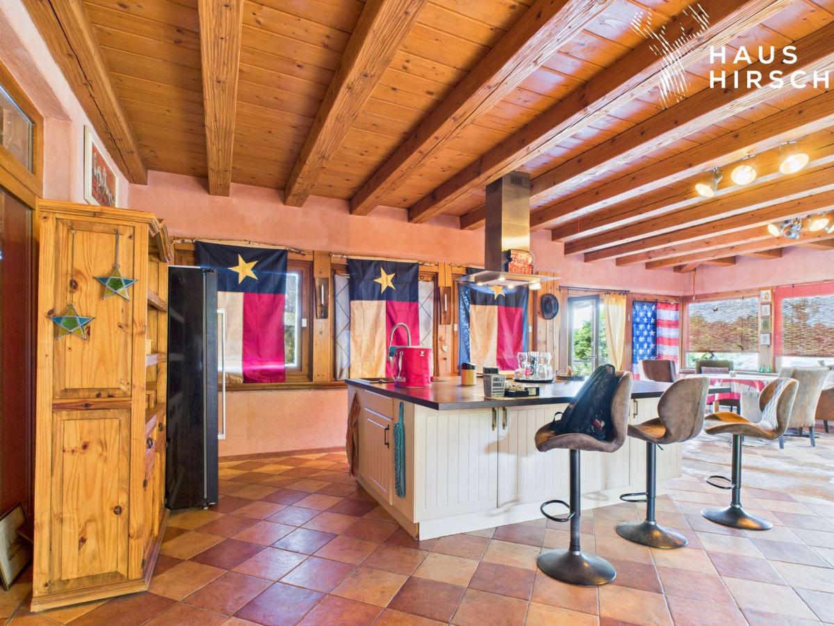 Entspannen Sie im großzügigen Außenbereich, der mit einer Grillstation, einer Außenküche, Pizzaöfen, einem Beach und vielem mehr ausgestattet ist. Genießen Sie die frische Luft auf der überdachten Holzterrasse oder nutzen Sie die Garagen und Werkstatt für Ihre persönlichen Belange.