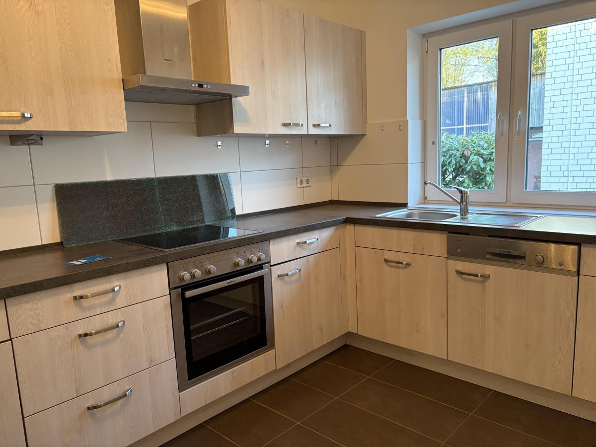 Vermietung einer attraktiven, ebenerdigen 2-Zimmer Wohnung mit eigenem Zugang bestehend aus Wohnzimmer mit Ausgang zur Terrasse, geräumigem Schlafzimmer, modernem Duschbad mit integriertem Waschmaschinenanschluss, Gäste-WC, Einbauküche.