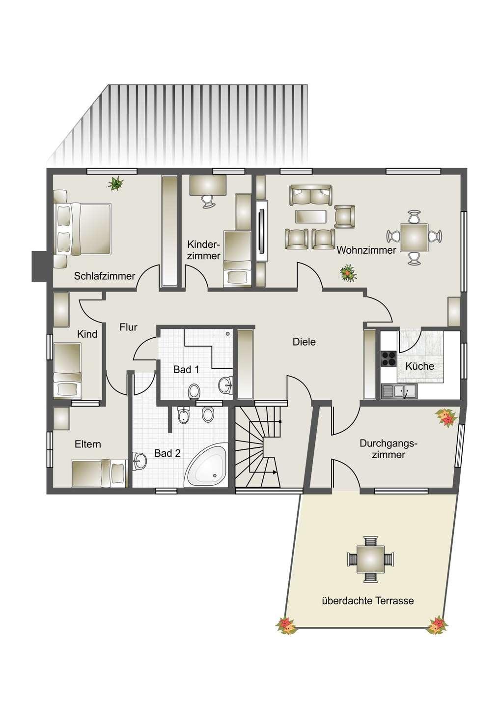 Visualisierungen dienen dem besser Verständnis der Immobilie und sind nicht maßstabgetreu, eine Gewährleistung wird nicht