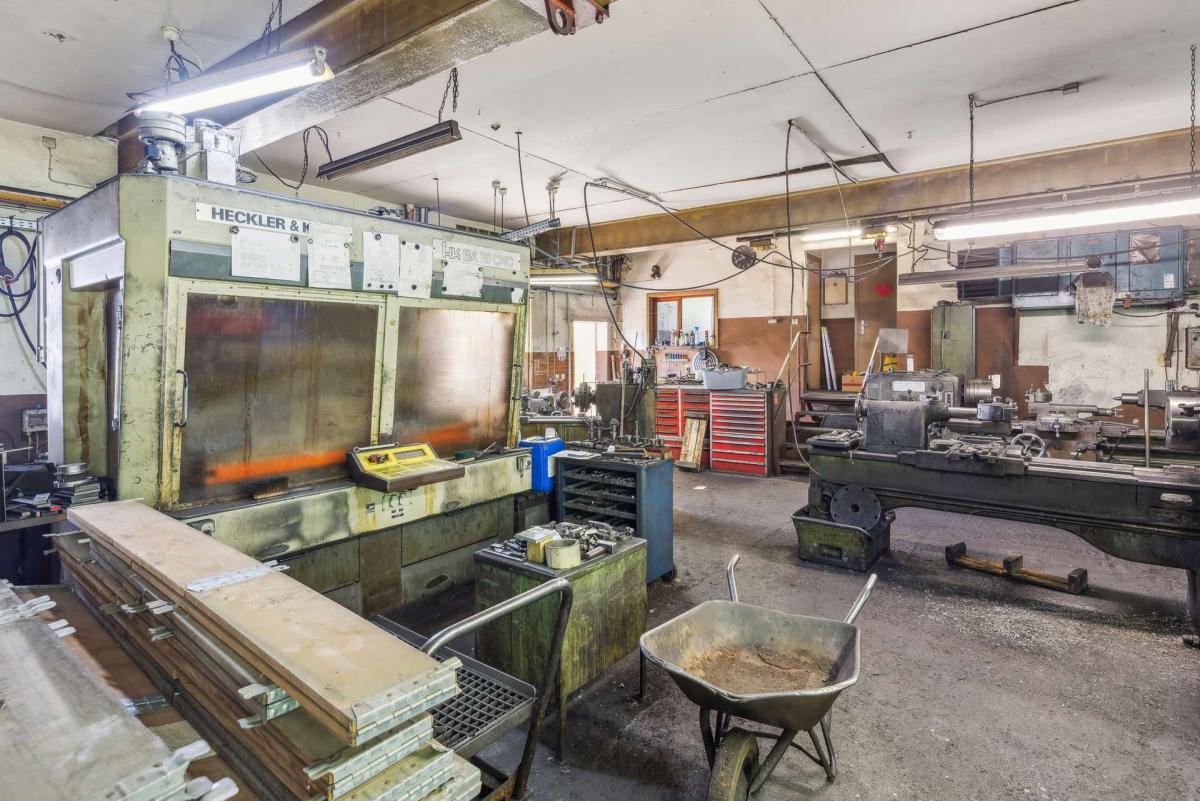 Im gemütlichen Ort Treis, einem Stadtteil von Staufenberg im Landkreis Gießen, erwartet Sie ein besonderes Anwesen, welches eine Kombination aus Wohnhaus und gewerblicher Nutzung bietet. Das Erdgeschoss des Gebäudes beherbergt eine ca. 213 m² große, geräumige Werkstatt (ehemalige Dreherei), die vielfältige Nutzungsmöglichkeiten bietet, sei es für handwerkliche Arbeiten oder als Lagerfläche. Der Zugang zu den Wohnräumen im ersten Obergeschoss erfolgt über ein Treppenhaus.