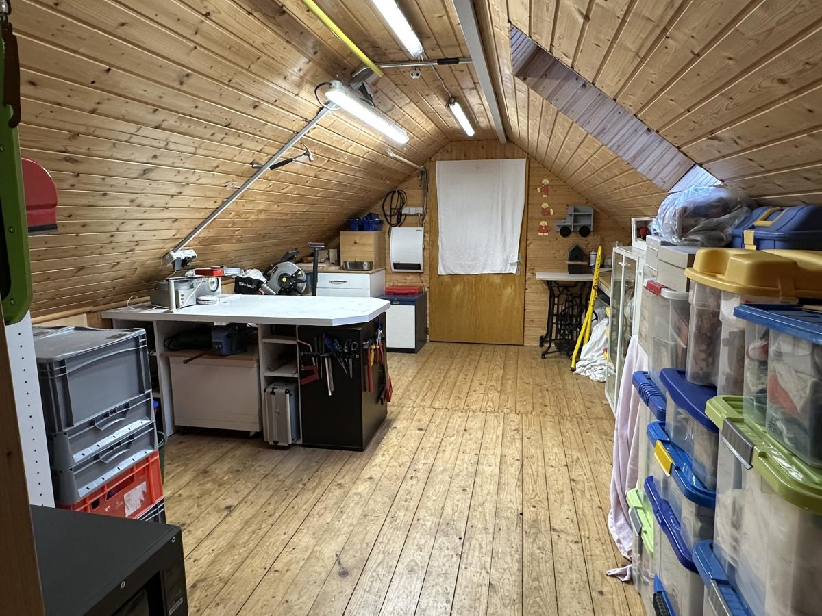 Zusätzlich befindet sich im Außenbereich ein praktisches Nebengebäude mit Gäste-WC – ideal für Feiern, Hobby oder Gartenarbeit. Der ausgebaute Dachboden des Nebengebäudes bietet darüber hinaus viel wertvolle Staufläche.