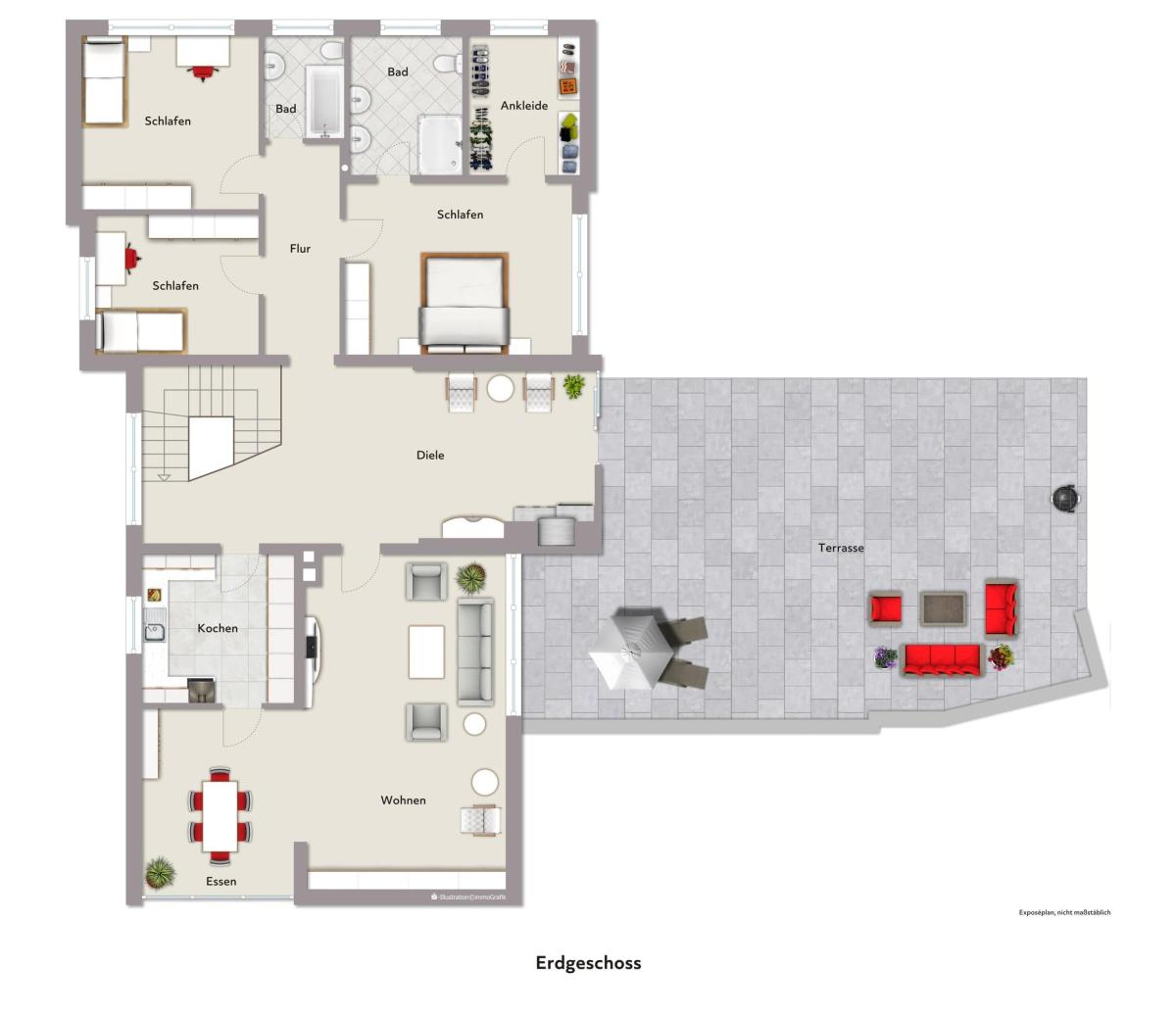 Ein Highlight des Hauses ist die Terrasse, die Ihnen einen wunderschönen Außenbereich bietet, um die Natur zu genießen und mit Ihrer Familie gemeinsame Momente zu teilen. Der Garten, der zum Objekt gehört, lädt Sie nahezu ganzjährig zum Verweilen ein. Im Winter können Sie sich an einem gemütlichen Abend am Kaminfeuer wärmen und die Ruhe und den Frieden des Hauses genießen. Zwei PKW-Garagen gehören ebenfalls zu dem Anwesen.