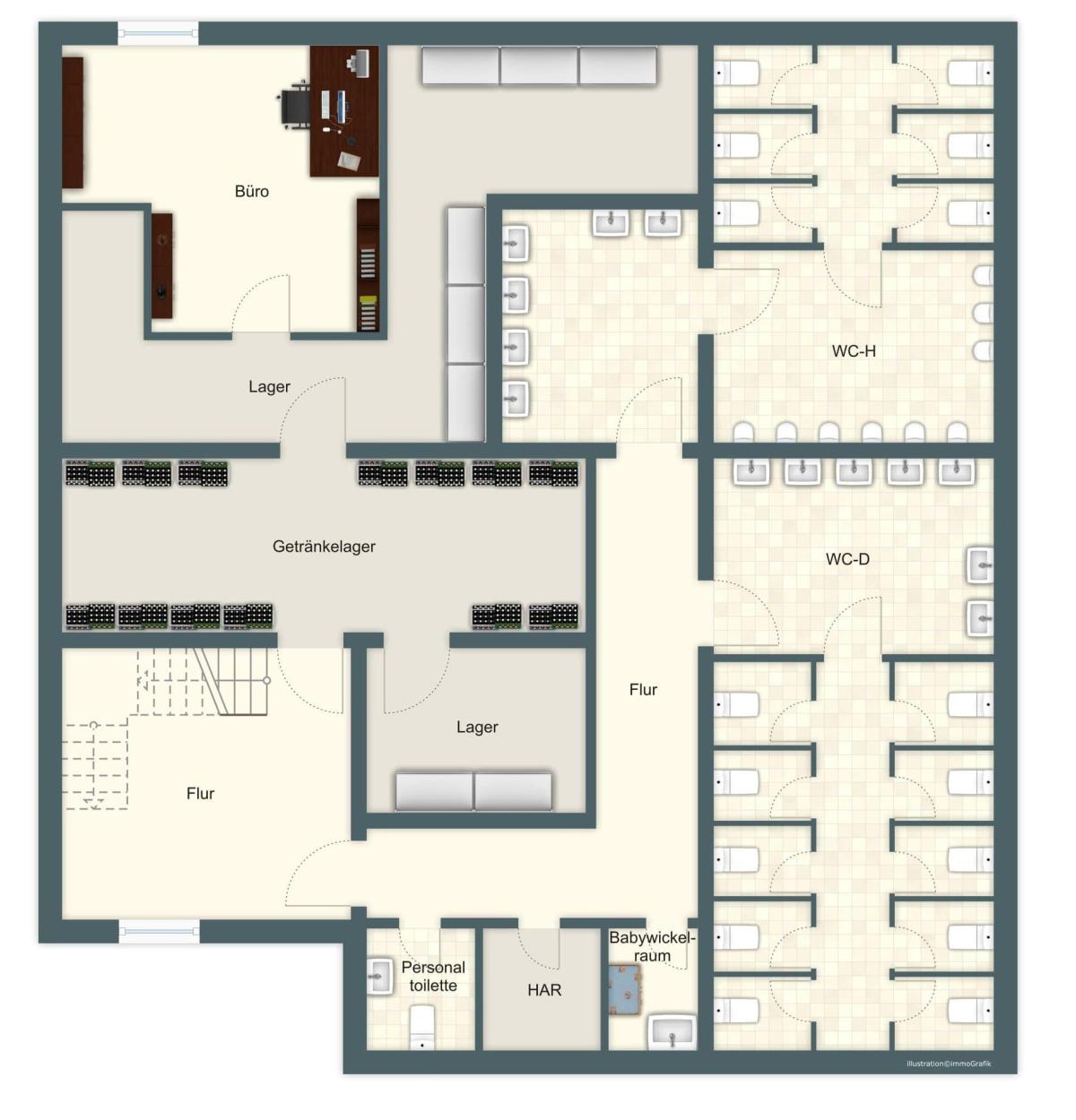 Kühlhaus, Toiletten-Anlagen, Büro, Lagerräume