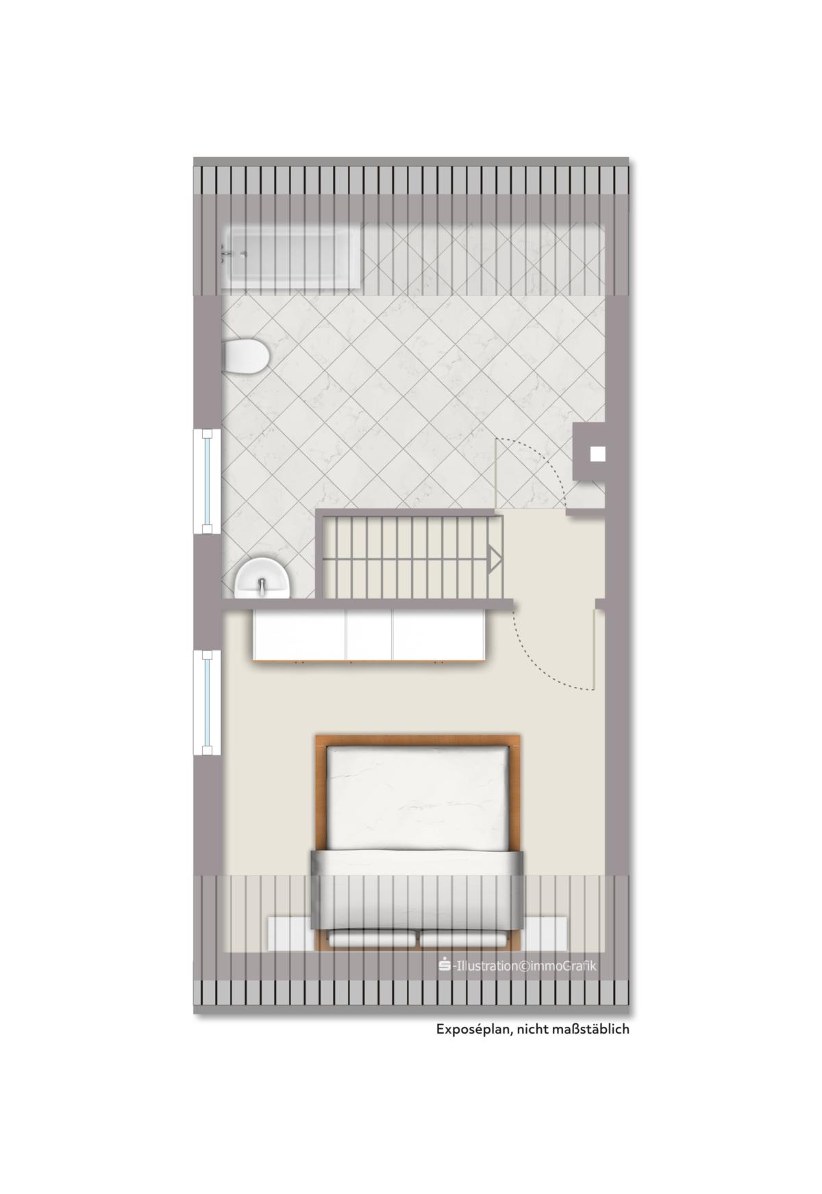Im Erdgeschoss befinden sich das gemütliche Wohnzimmer mit angrenzendem Essbereich sowie eine separate Küche. Ein angebautes Badezimmer ergänzt die Wohnräume auf dieser Ebene. Ein weiterer Pluspunkt ist der Balkon im Erdgeschoss, der zum Entspannen im Freien einlädt. Im Dachgeschoss erwarten Sie ein großes Badezimmer und ein geräumiges Schlafzimmer, das ausreichend Platz für eine individuelle Gestaltung bietet.