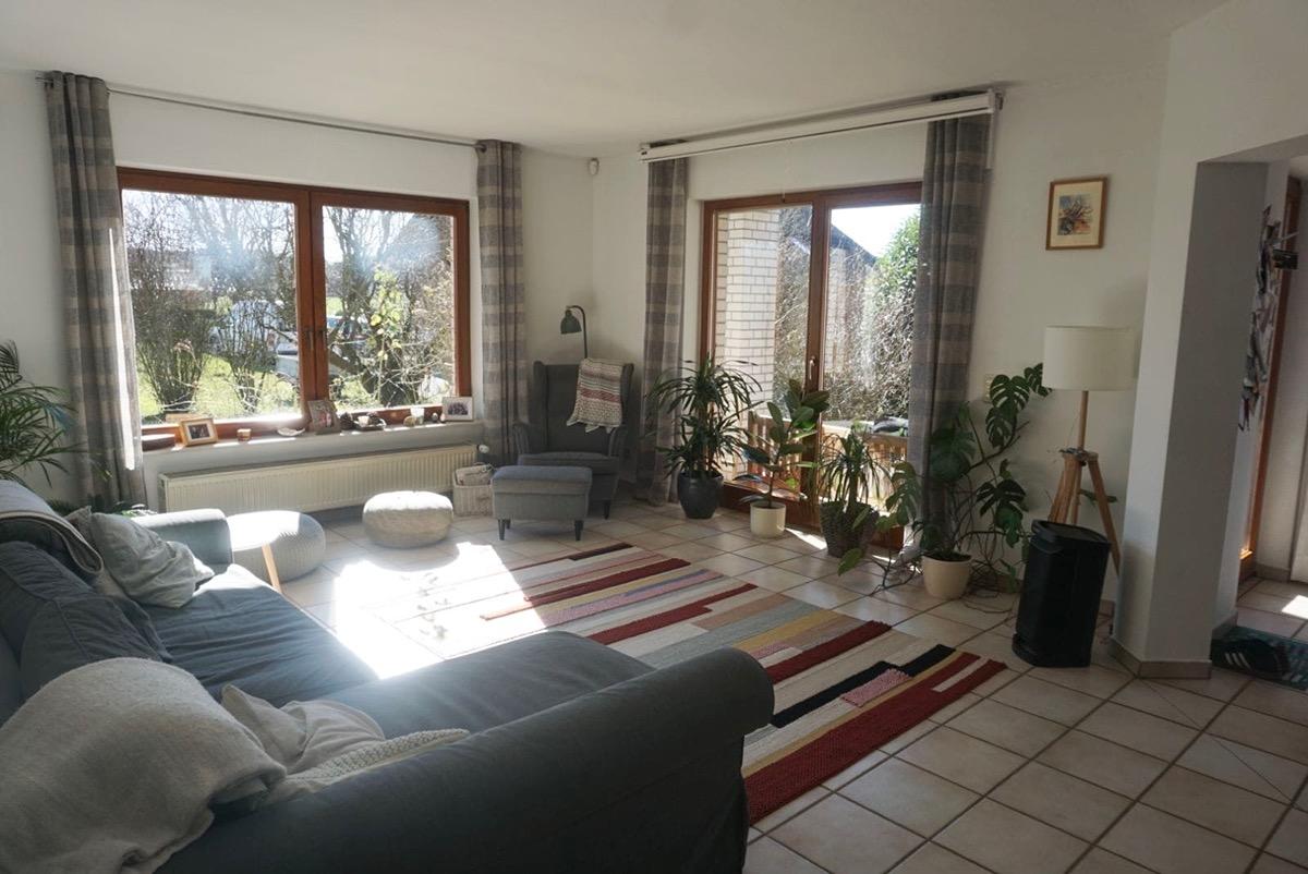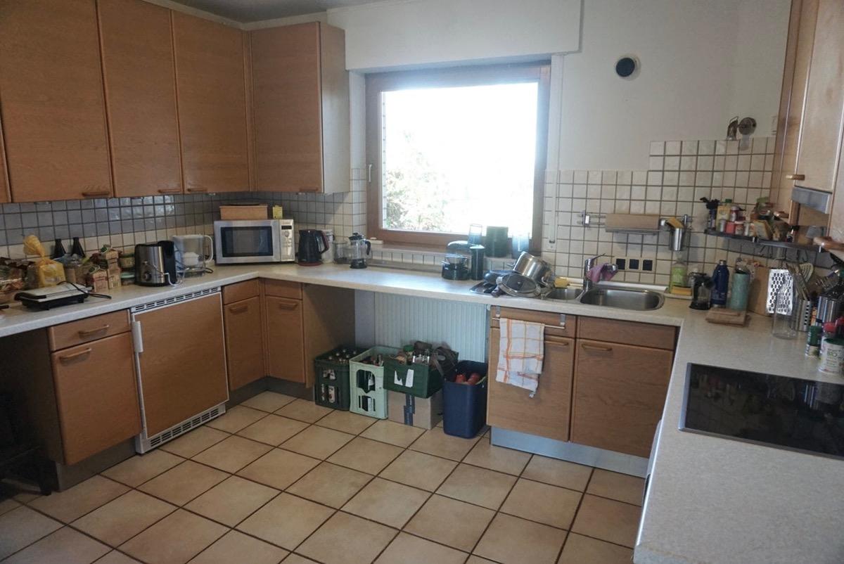 - Erdgeschoss: Helles Wohnzimmer mit Zugang zur Terrasse, Esszimmer, separate Küche inklusive (älterer) Einbauküche, Gäste-WC