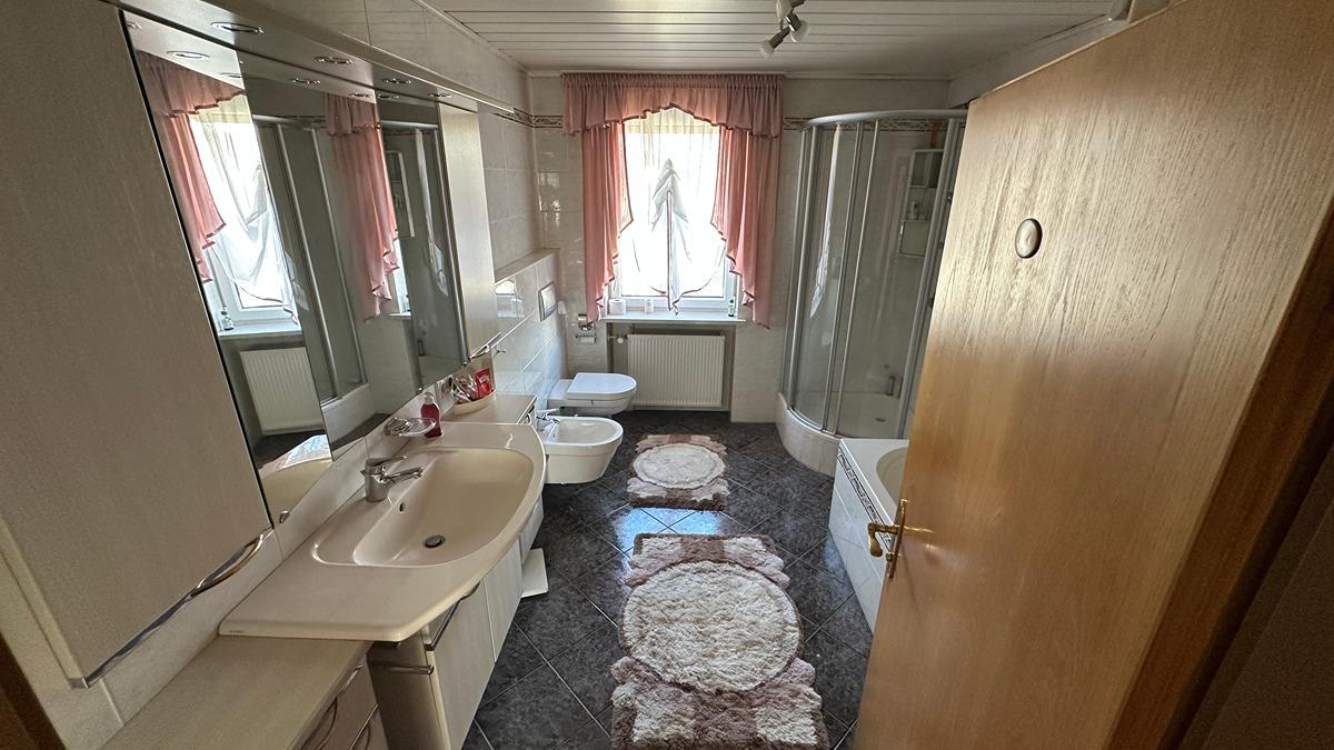 Zudem verfügt die Immobilie über einen Balkon, große Garage, Garten mit Werkstatt, Lagerraum + Terrasse.