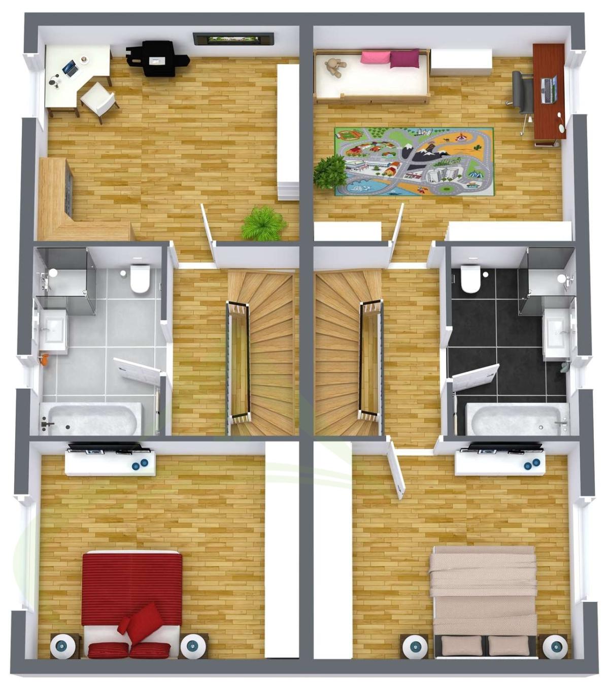 Oben warten Ruhe und Rückzug. Helle Schlafzimmer schenken erholsame Nächte, das stilvolle Bad mit bodengleicher Dusche (und, je nach Ausführung, zusätzlicher Wanne) verwandelt Morgenroutine in Me-Time. Ein weiteres Zimmer wird zum gemütlichen Kinderreich, zum Gästezimmer oder zum Ankleideraum – so, wie es zu Ihrem Leben passt.