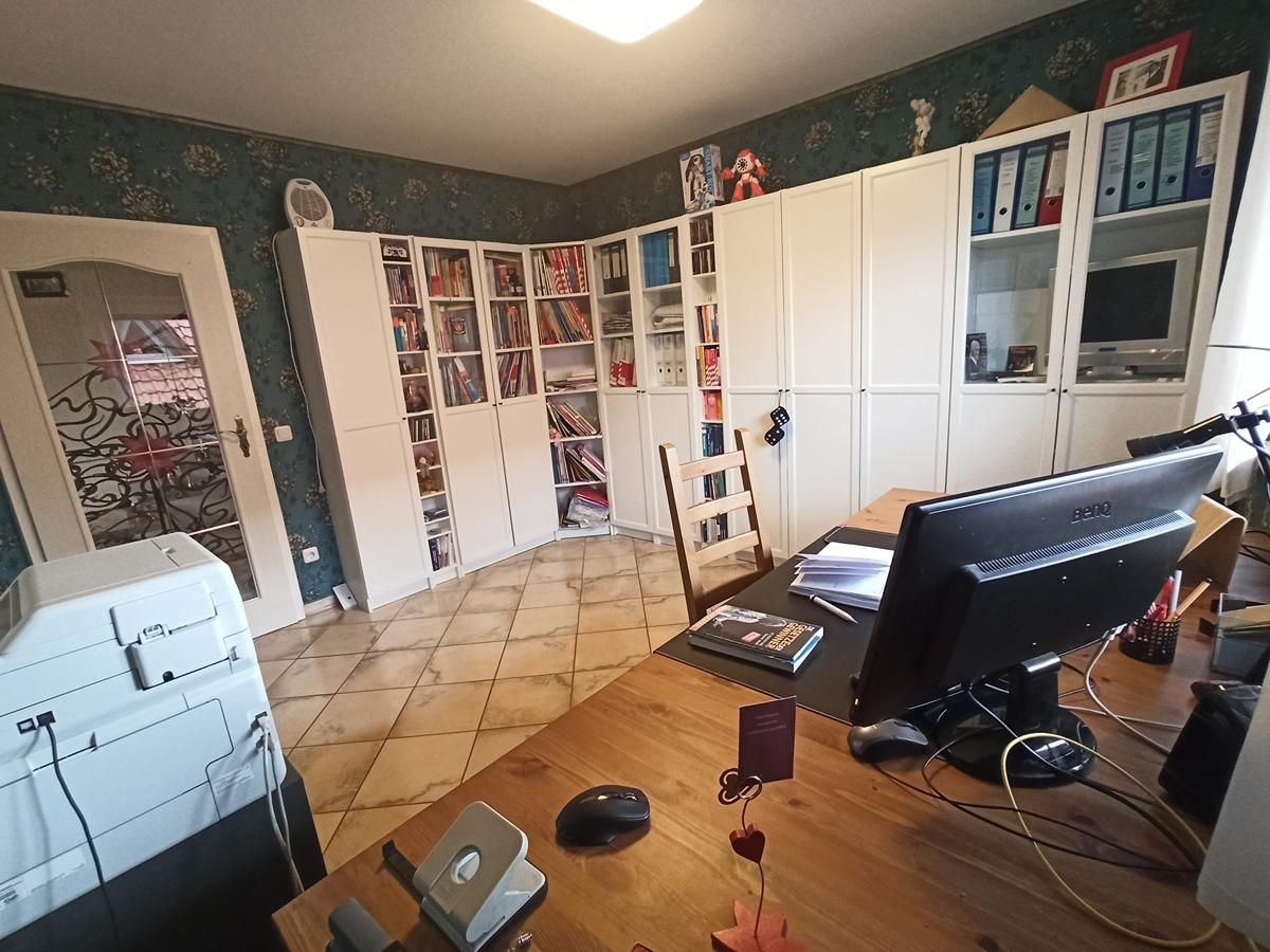 WZ, Essen, Küche, HWR, Büro, Gäste-WC, Garderobe, Flur, Terrasse ca. 135 m².