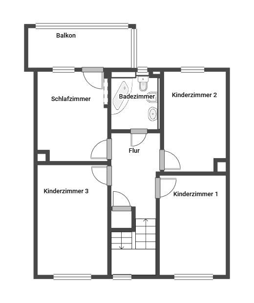 Diese klare Raumstruktur ermöglicht eine flexible Nutzung und eine einfache Anpassung an individuelle Wohnbedürfnisse.