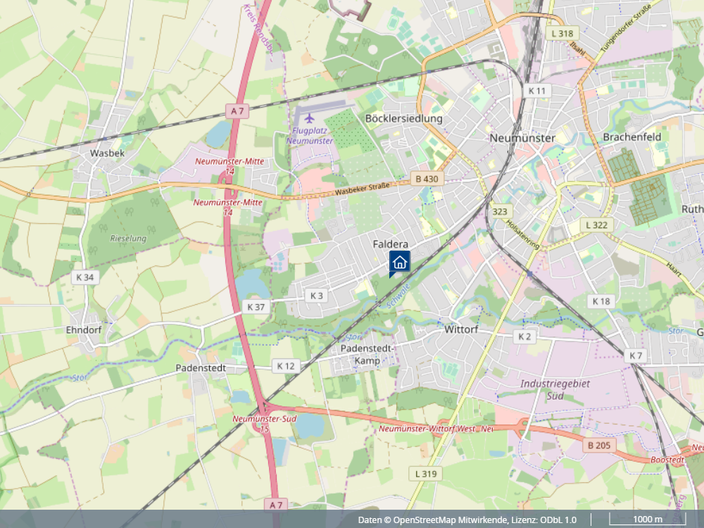 Die Immobilie befindet sich zentral gelegen im Stadtteil Neumünster-Faldera in einer modernen Reihenhaussiedlung. Sie liegt am Rande bzw. im hinteren verkehrsruhigen Bereich des Grundstücksareals mit gleichartiger Wohnbebauung. Ein Einkaufsmarkt findet sich in unmittelbarer Nachbarschaft. Im weiteren angrenzenden Umfeld sind eine Gewerbefläche und insbesondere städtische Wald- bzw. Grünflächen vorhanden. Der Stadtteil bietet insgesamt eine gute Infrastruktur.