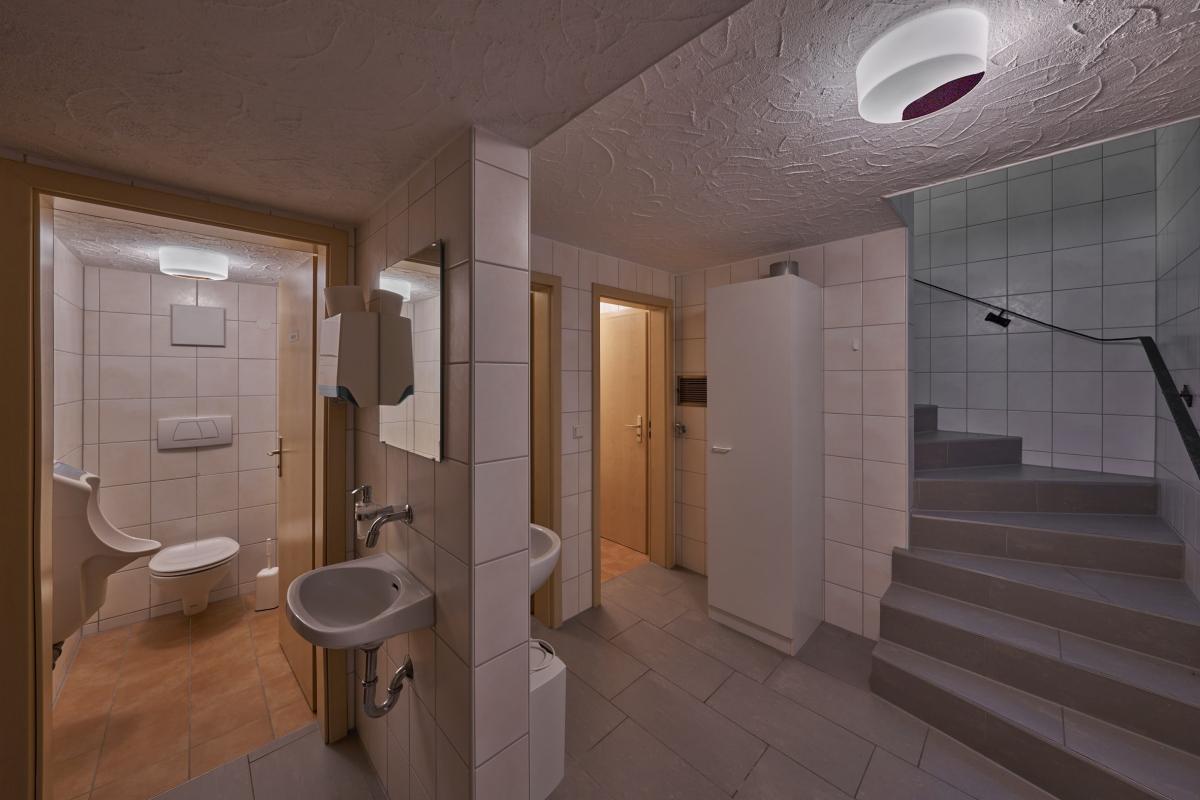 Dusche, Umkleidebereich mit weiterem WC im Untergeschoss