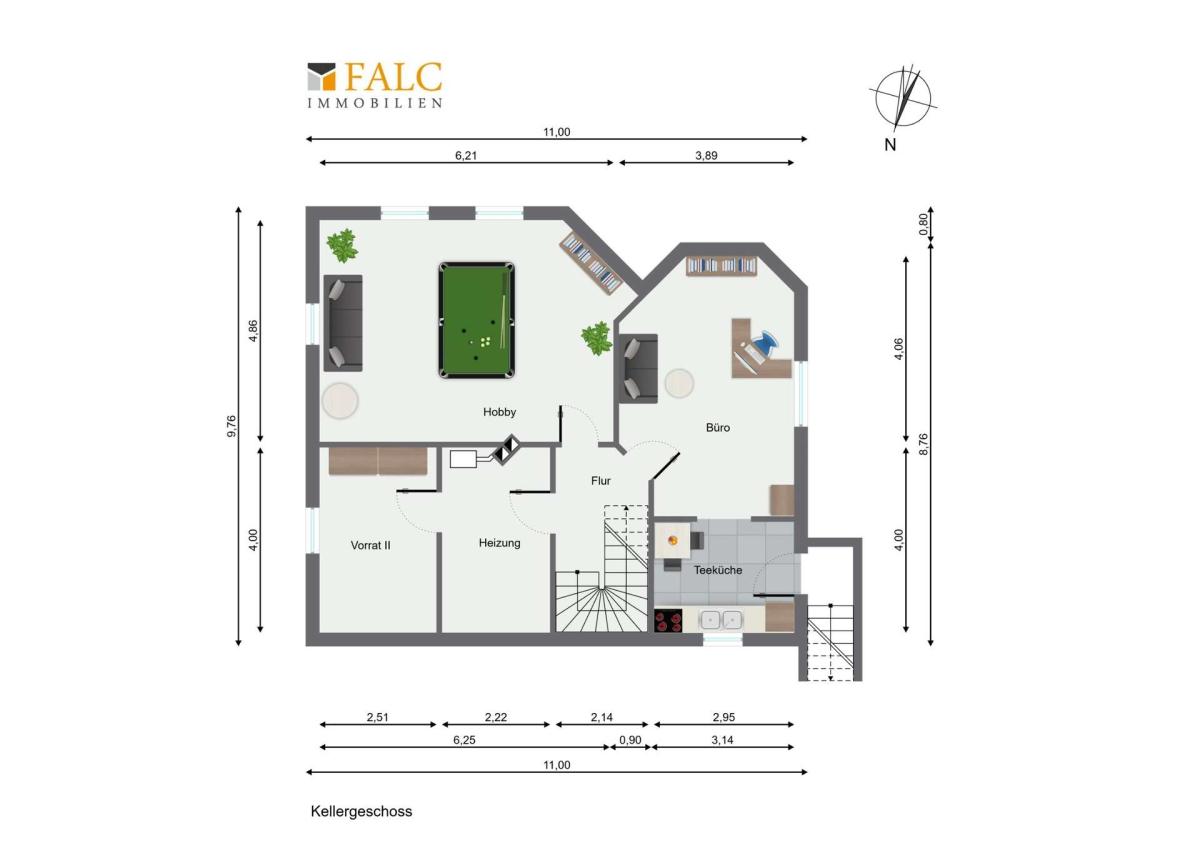 - Keller: Anschlüsse für eine kleine Küche sind vorhanden