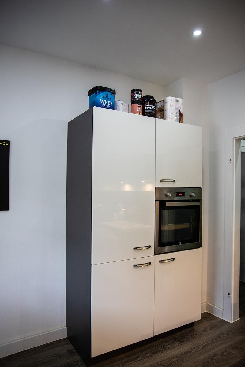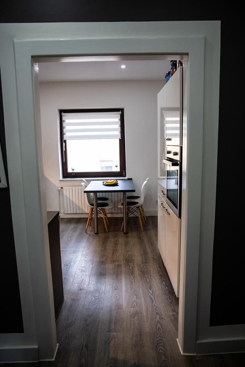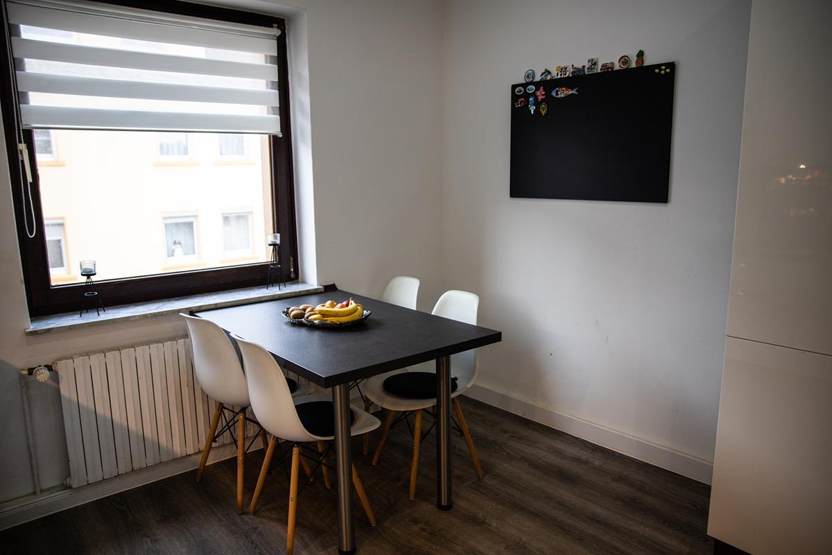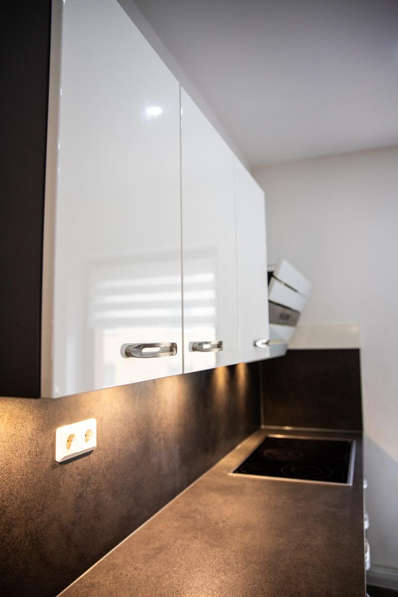 Die hochwertige, maßgefertigte Einbauküche ist optimal an den Raum angepasst und bereits im Kaufpreis enthalten (inkl. Spülmaschine & eingebautem Tisch).